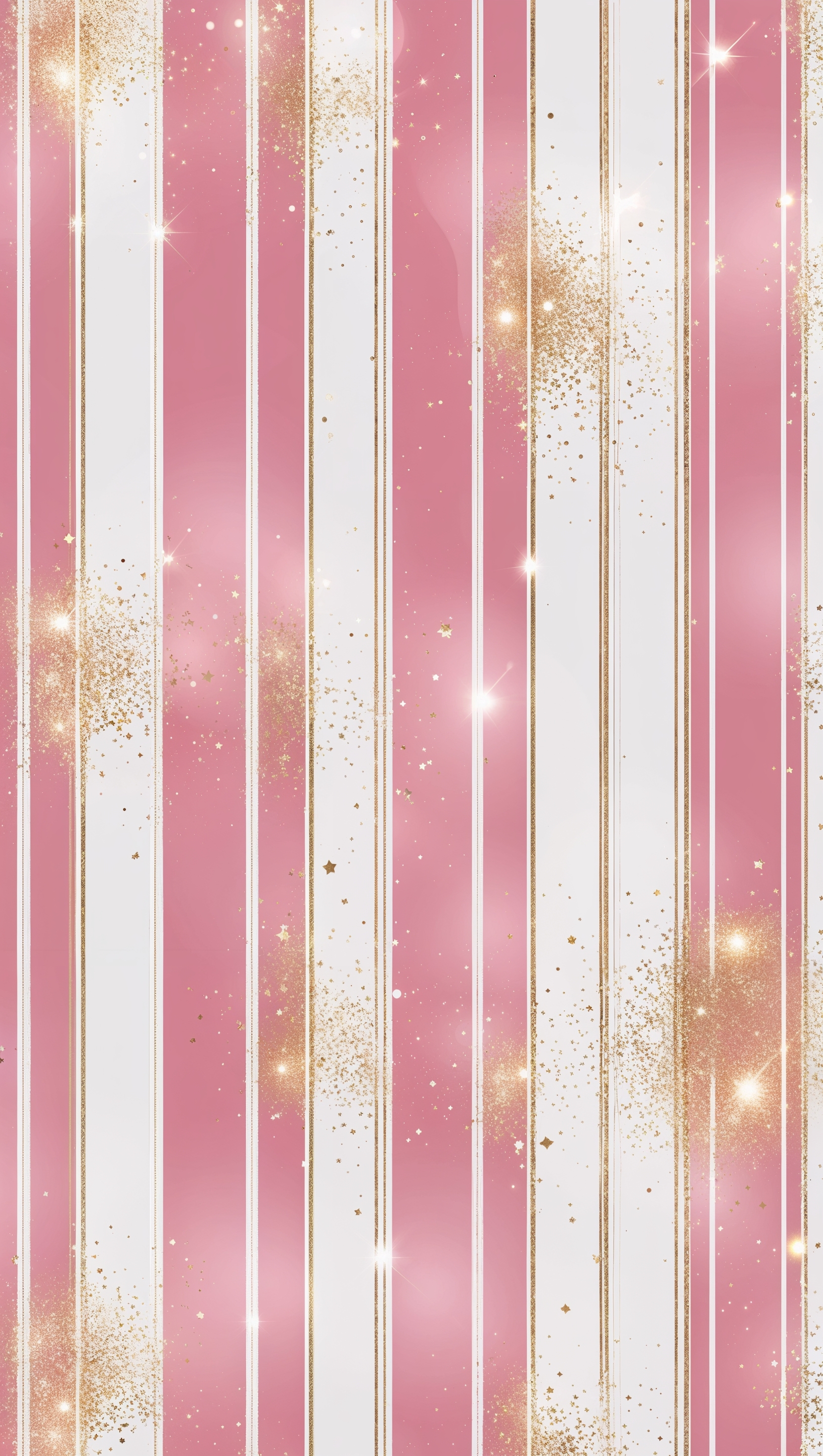 Vertical stripes in pink and white with golden sparkle highlights 1664x2944 Vertical stripes in pink and white with golden sparkle highlights
