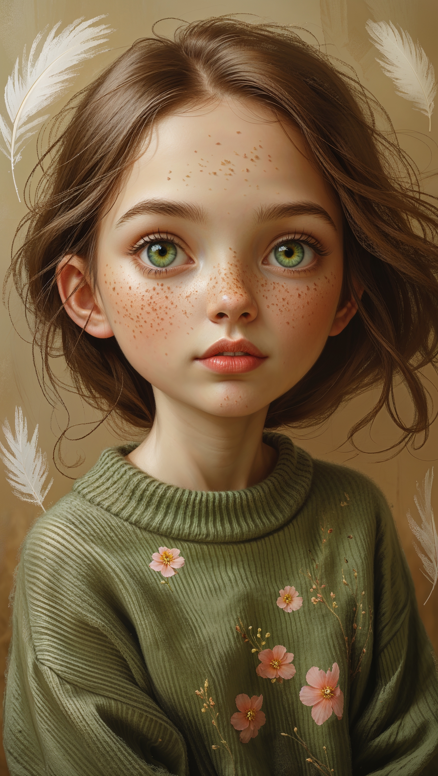 Painterly style girl with freckles, oversized sweater, soft brush strokes 1664x2944 Painterly style girl with freckles, oversized sweater, soft brush strokes