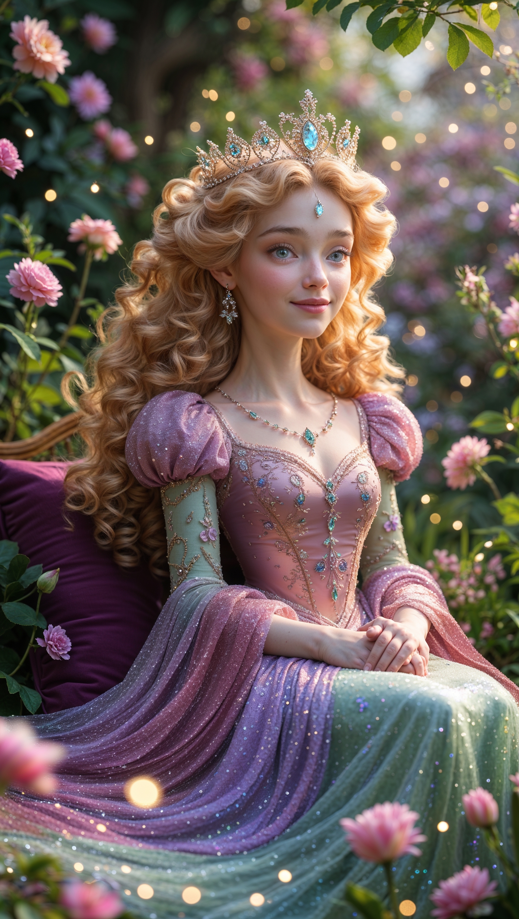 Princess girl sitting in garden with a small crown and sparkly dress 1664x2944 Princess girl sitting in garden with a small crown and sparkly dress