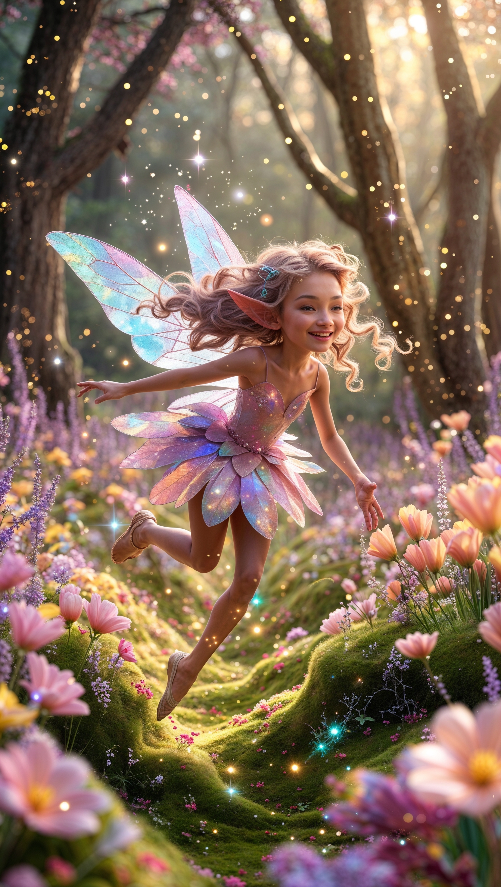Fairy girl flying through a flower forest trail, sparkles and wings glowing 1664x2944 Fairy girl flying through a flower forest trail, sparkles and wings glowing
