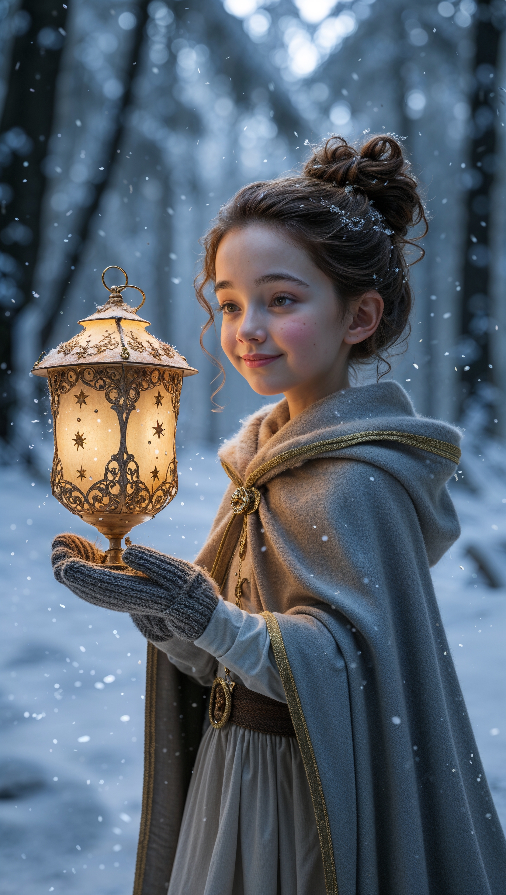 Girl with magical lantern walking through snow-covered forest 1664x2944 Girl with magical lantern walking through snow-covered forest