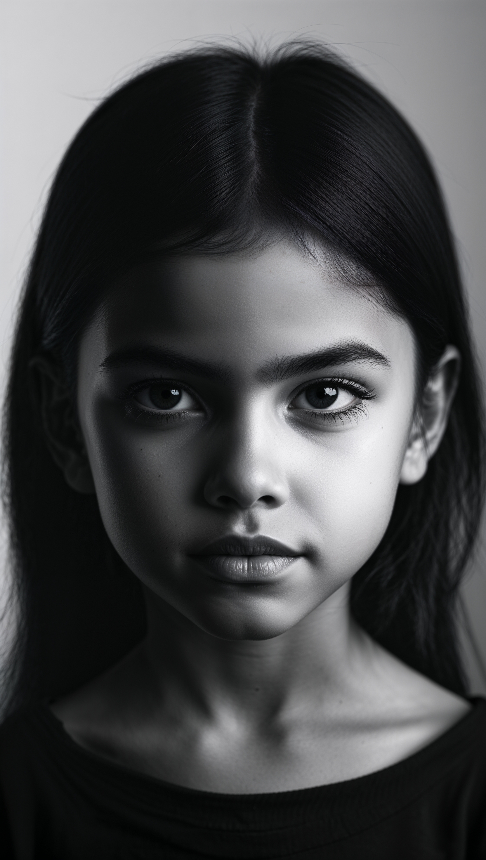High contrast black and white portrait of confident girl with bold gaze 1664x2944 High contrast black and white portrait of confident girl with bold gaze