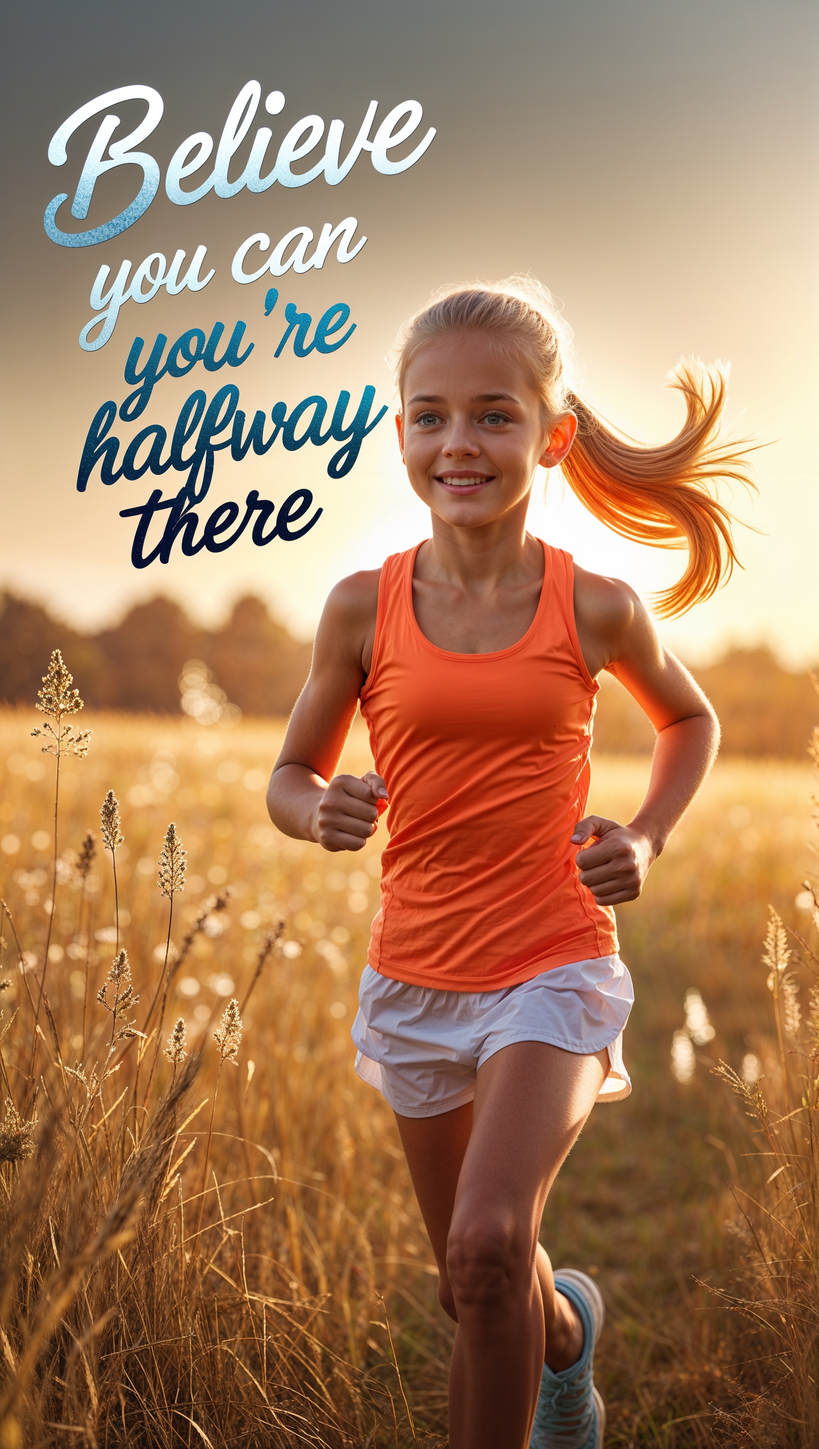 Motivational quote with girl running through sunrise-lit field 1664x2944 Motivational quote with girl running through sunrise-lit field