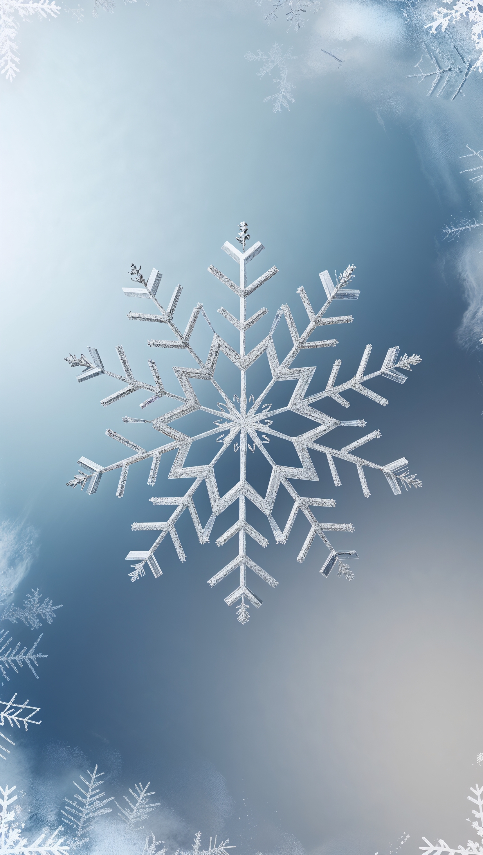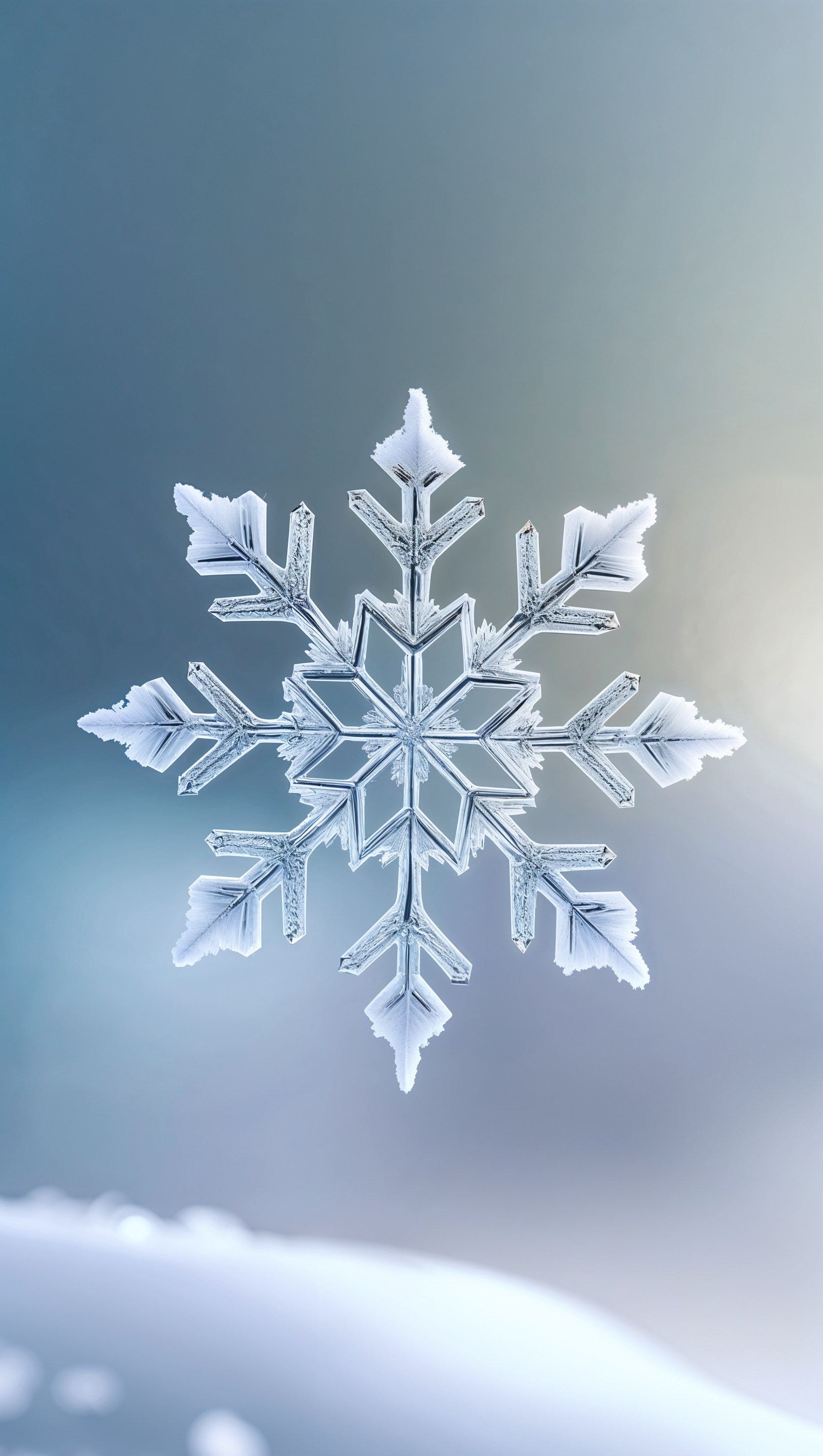 1664x2944 Single snowflake close-up in sharp focus over soft blurry background