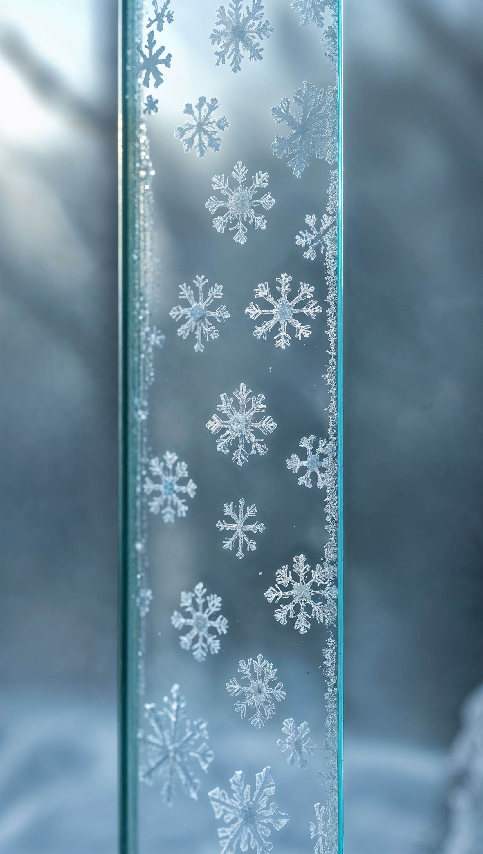 1664x2944 Frosted glass effect with snowflakes stuck on surface, vertical format