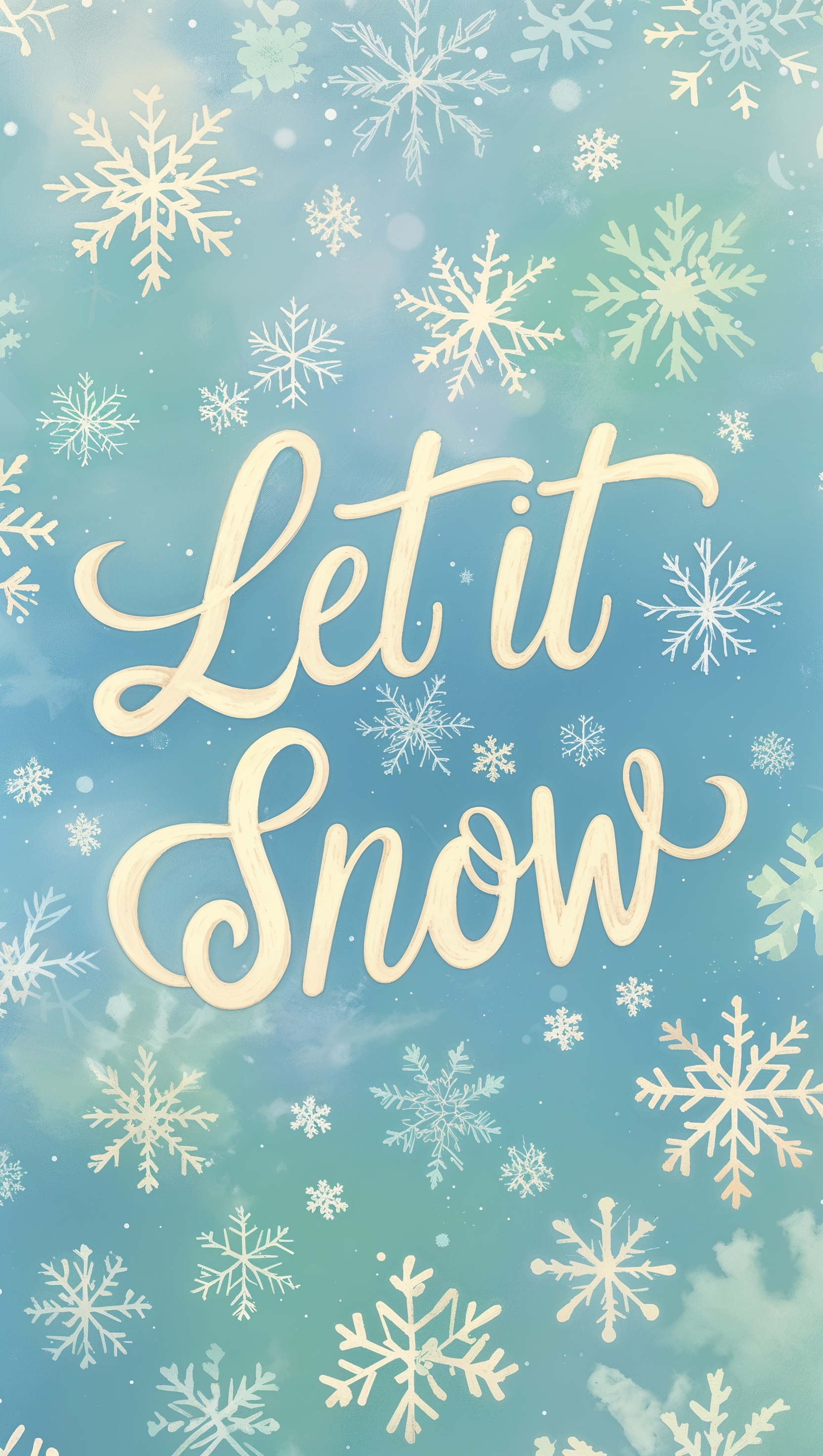 1664x2944 Text “Let it snow” in soft cursive with pastel snowflake background