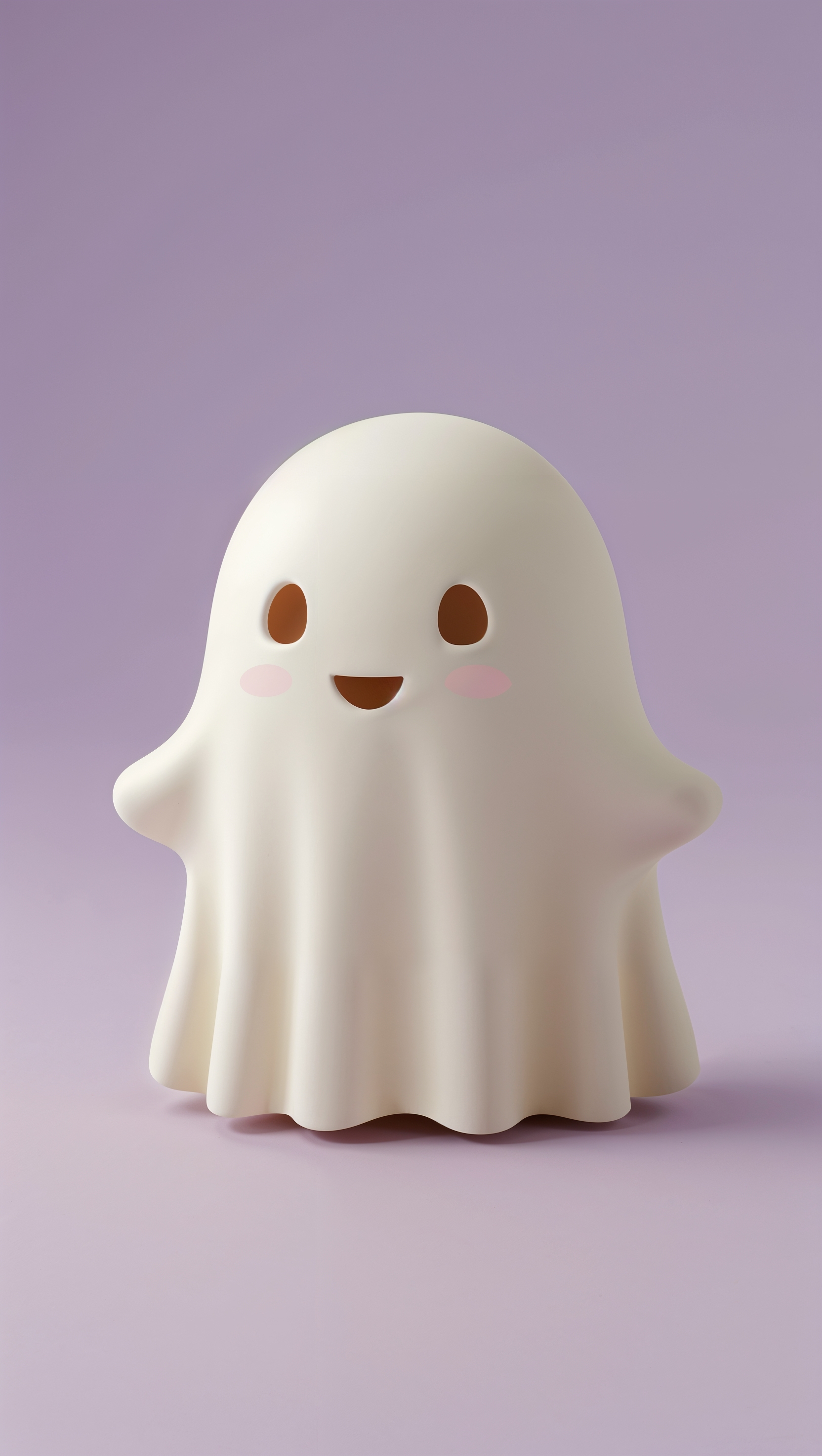 1664x2944 Minimal ghost icon in soft white on pastel purple background, kawaii style