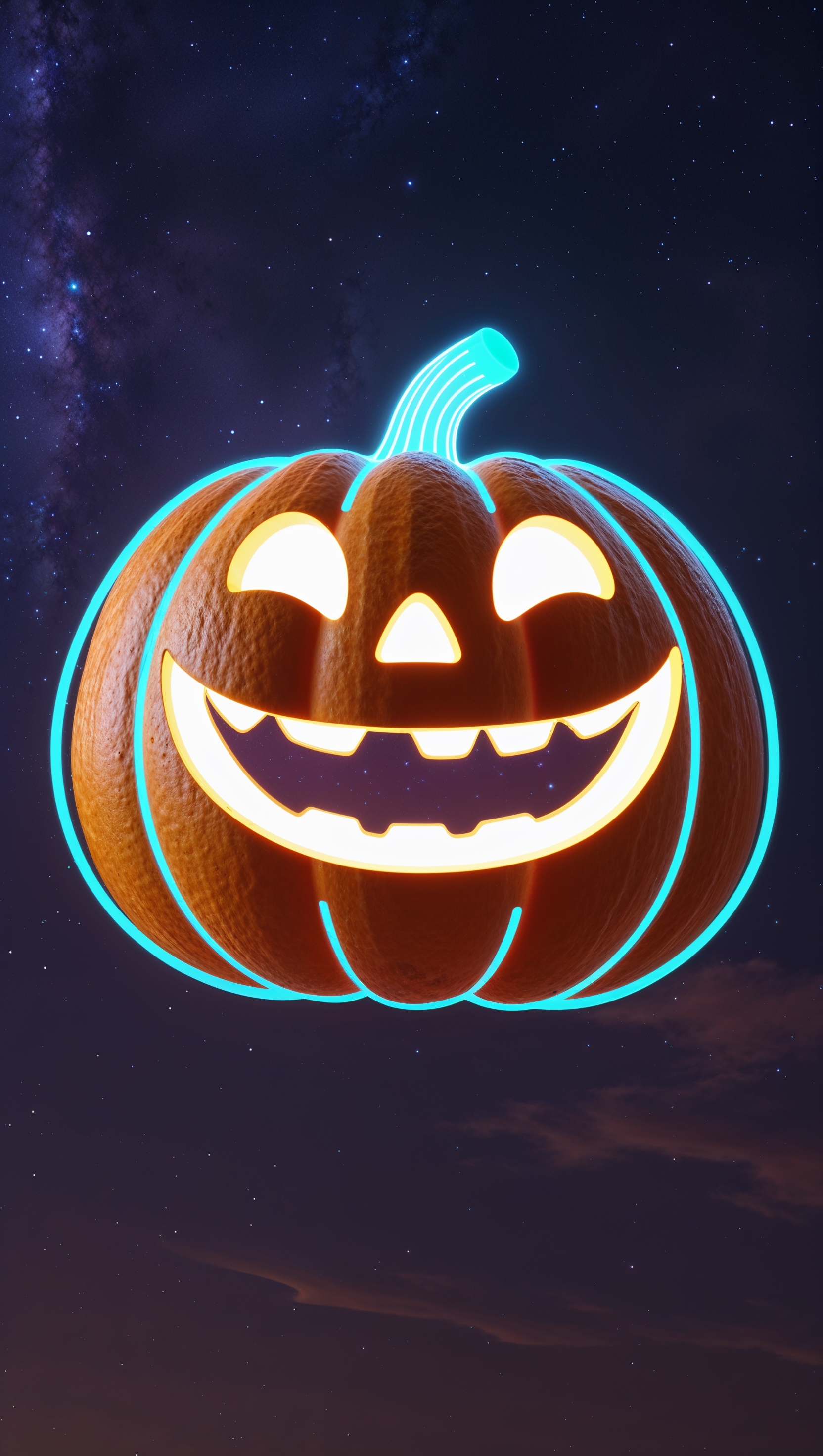 1664x2944 Smiling pumpkin face with neon outline on dark background