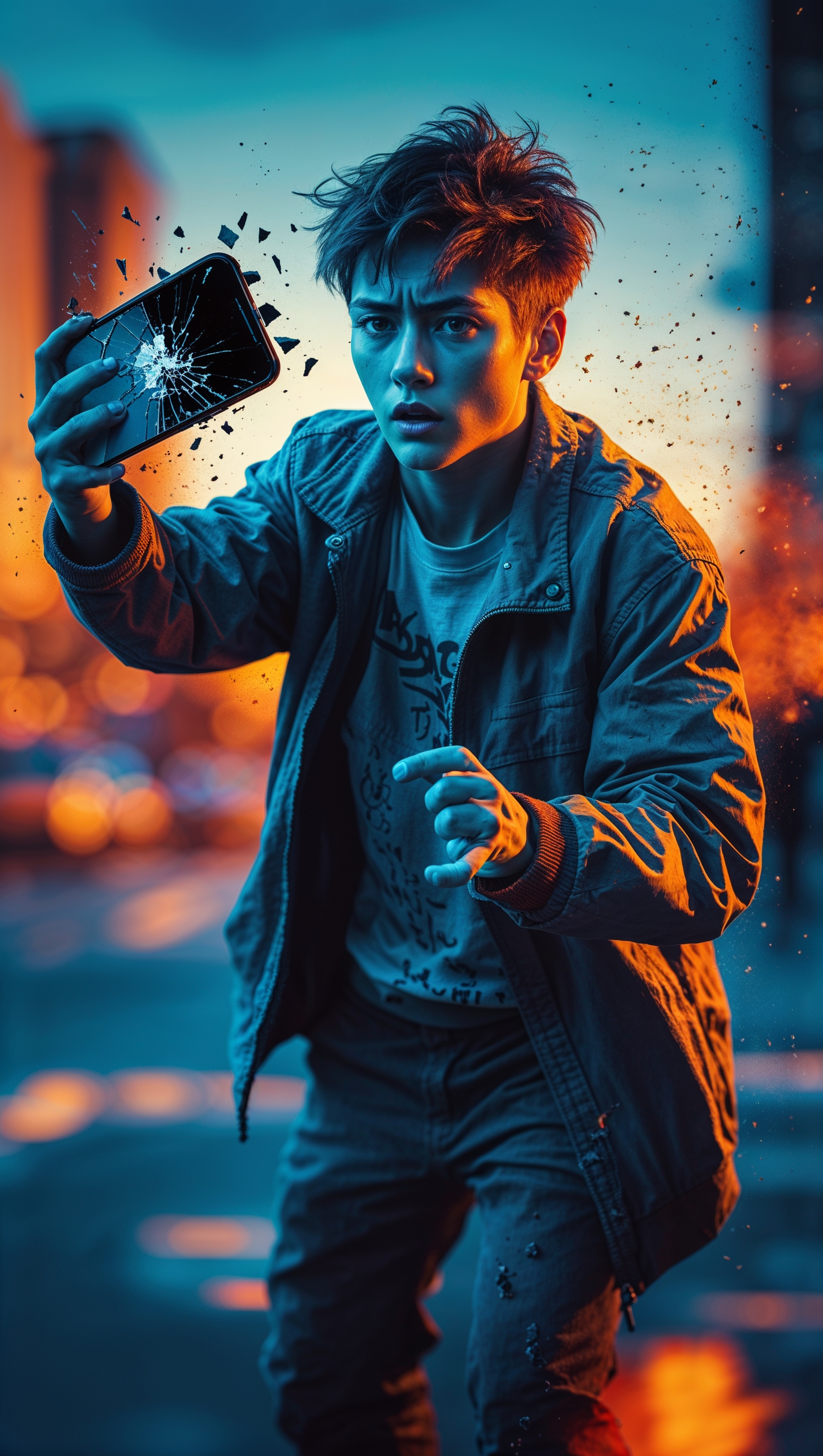 1664x2944 Banksy-style artwork of a person throwing a smartphone instead of a Molotov cocktail