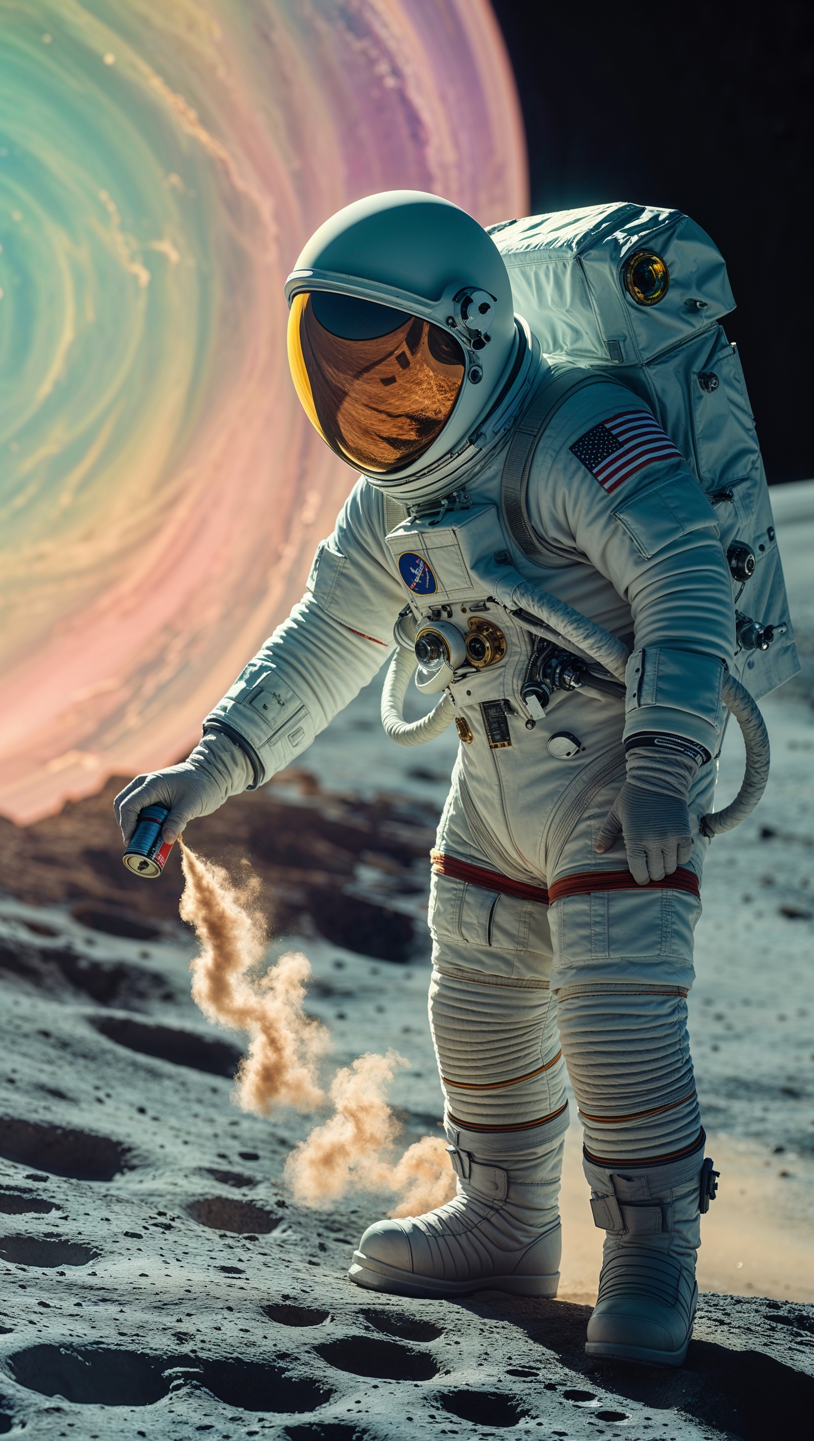 1664x2944 A design of an astronaut painting Banksy-style graffiti on the moon