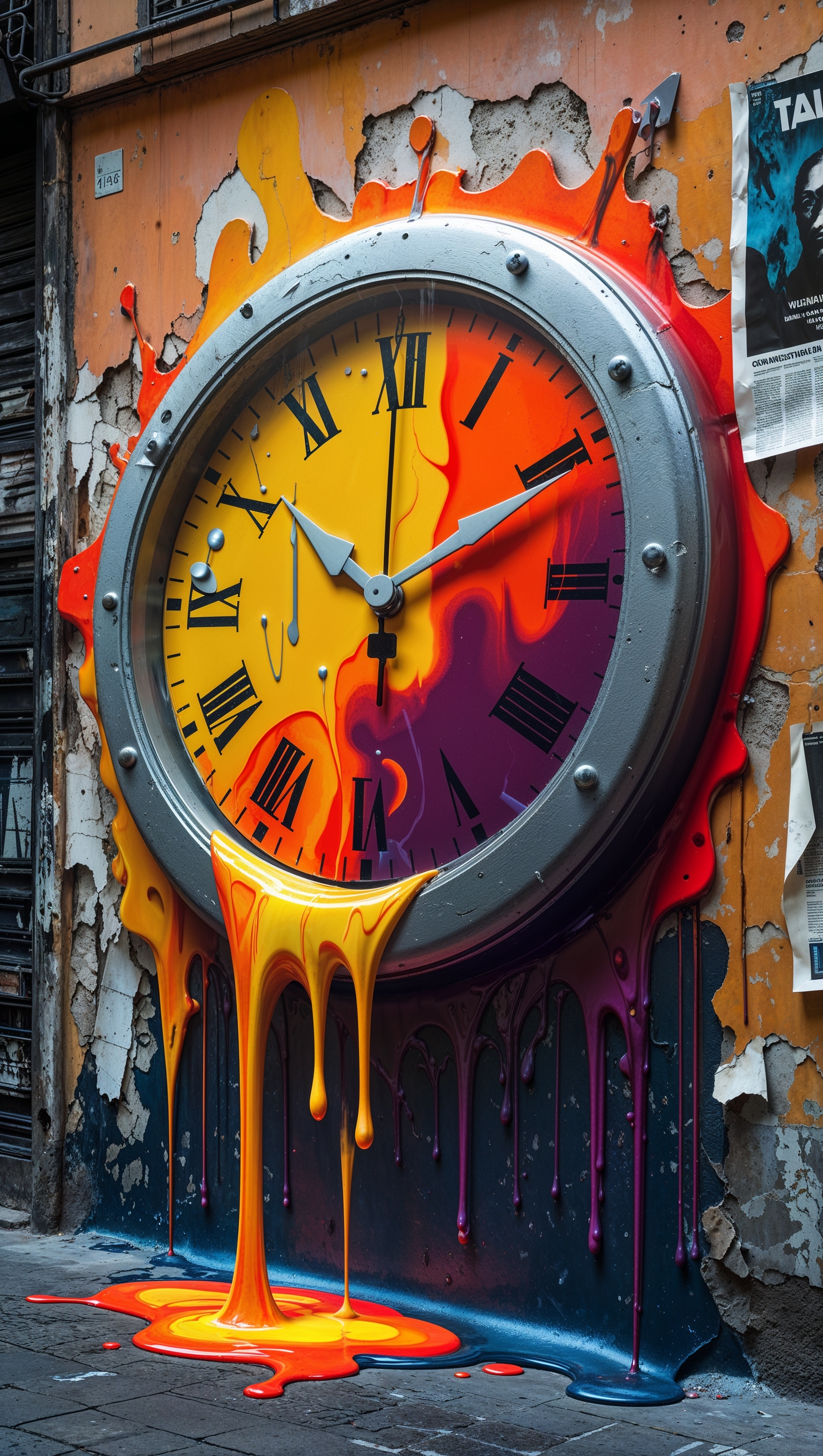 1664x2944 Street painting of a melting clock, in Banksy and Dali style