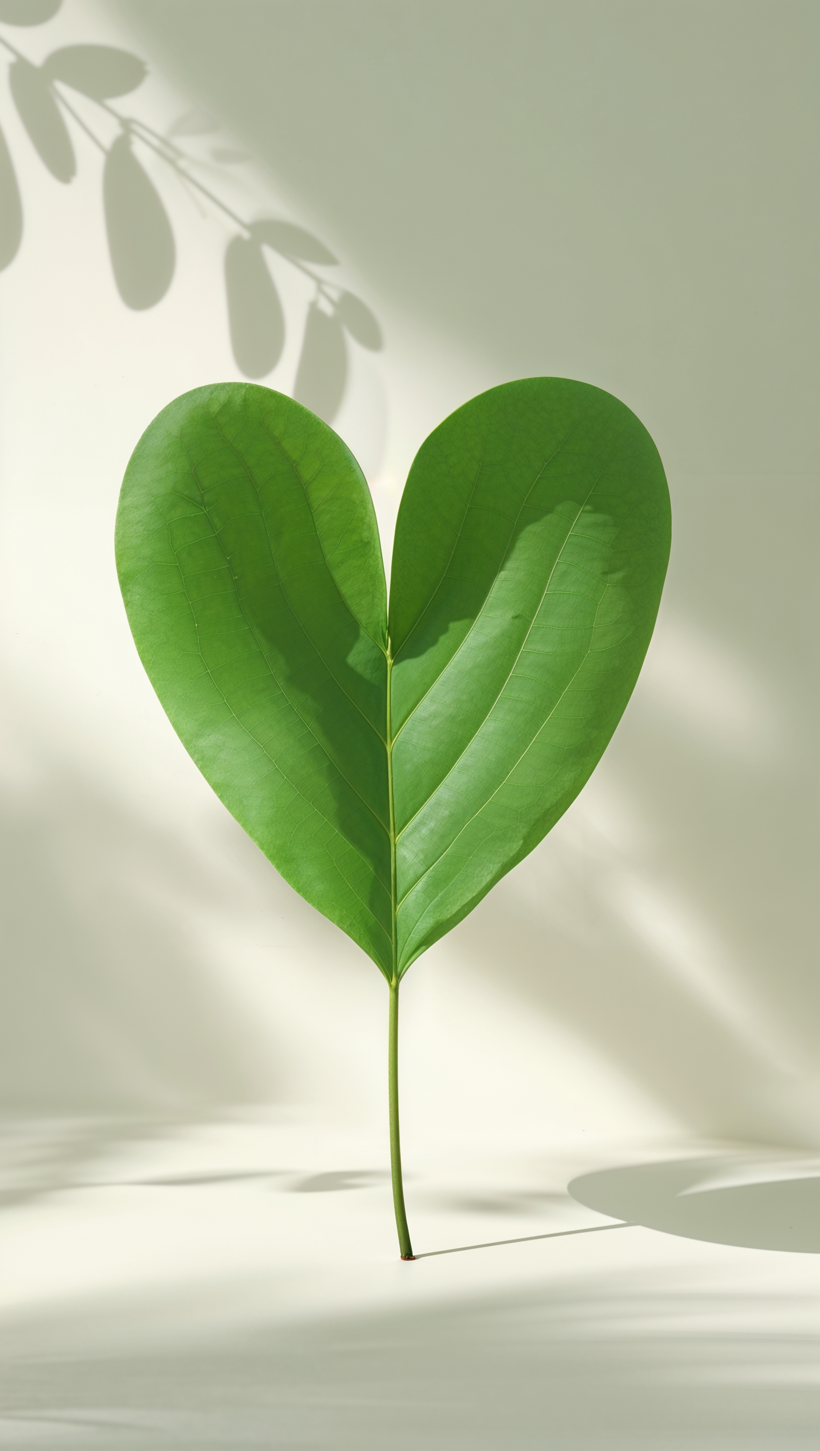 1664x2944 Single green leaf icon on clean white background, calm and natural