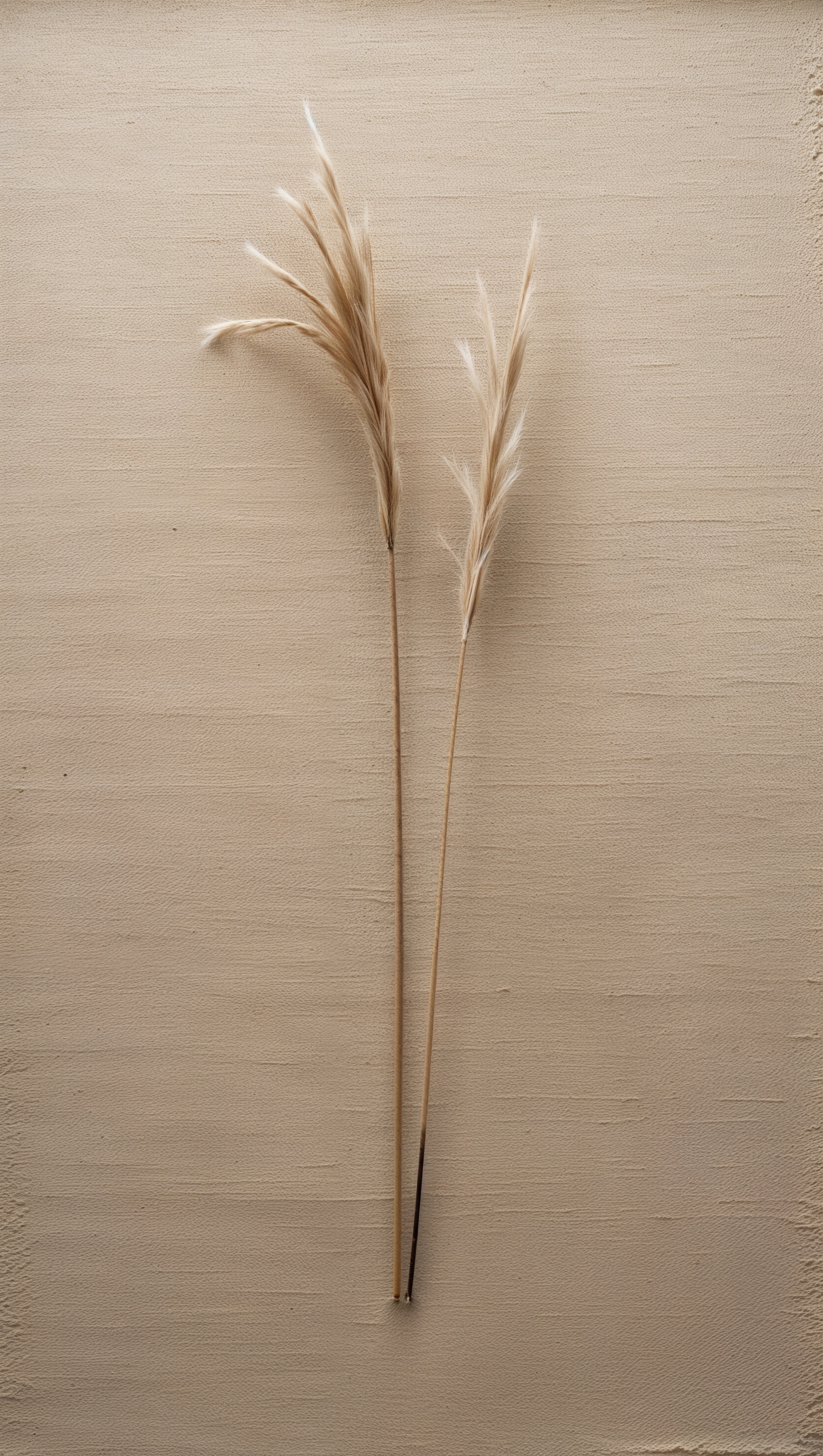 1664x2944 One stem of dried grass on textured beige canvas, natural minimalism