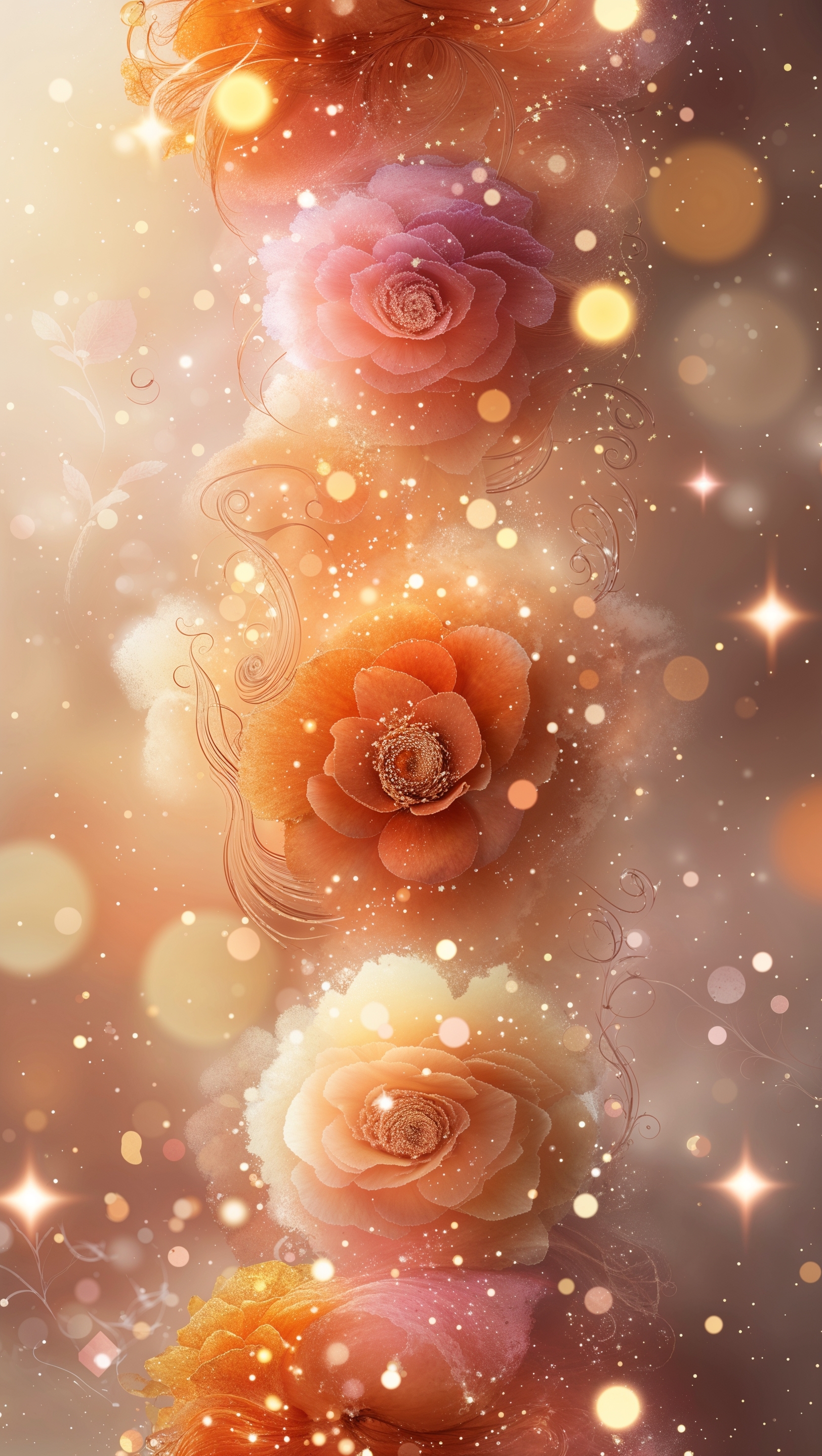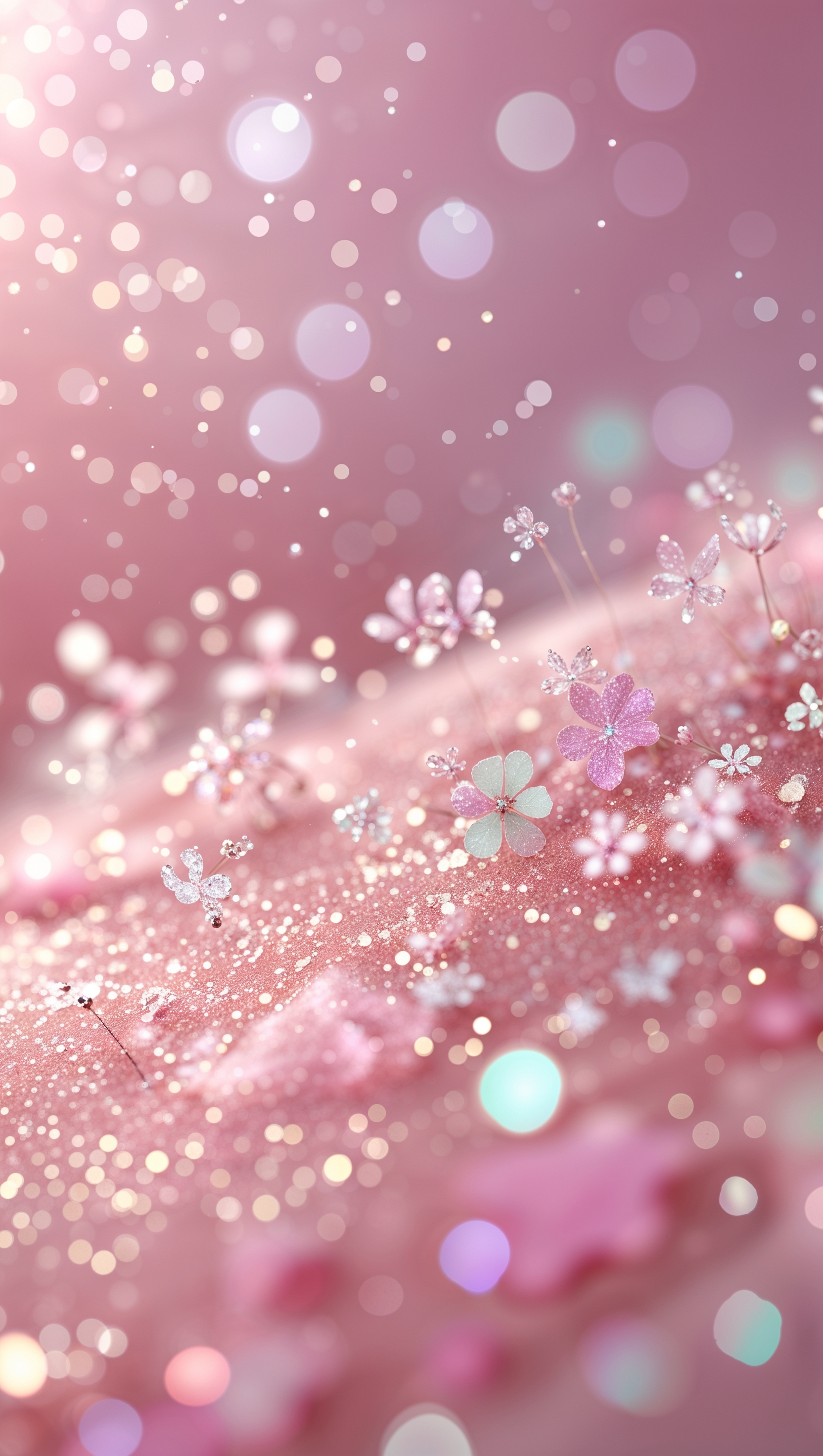 1664x2944 Subtle sparkle overlay on a blurred floral background, romantic aesthetic