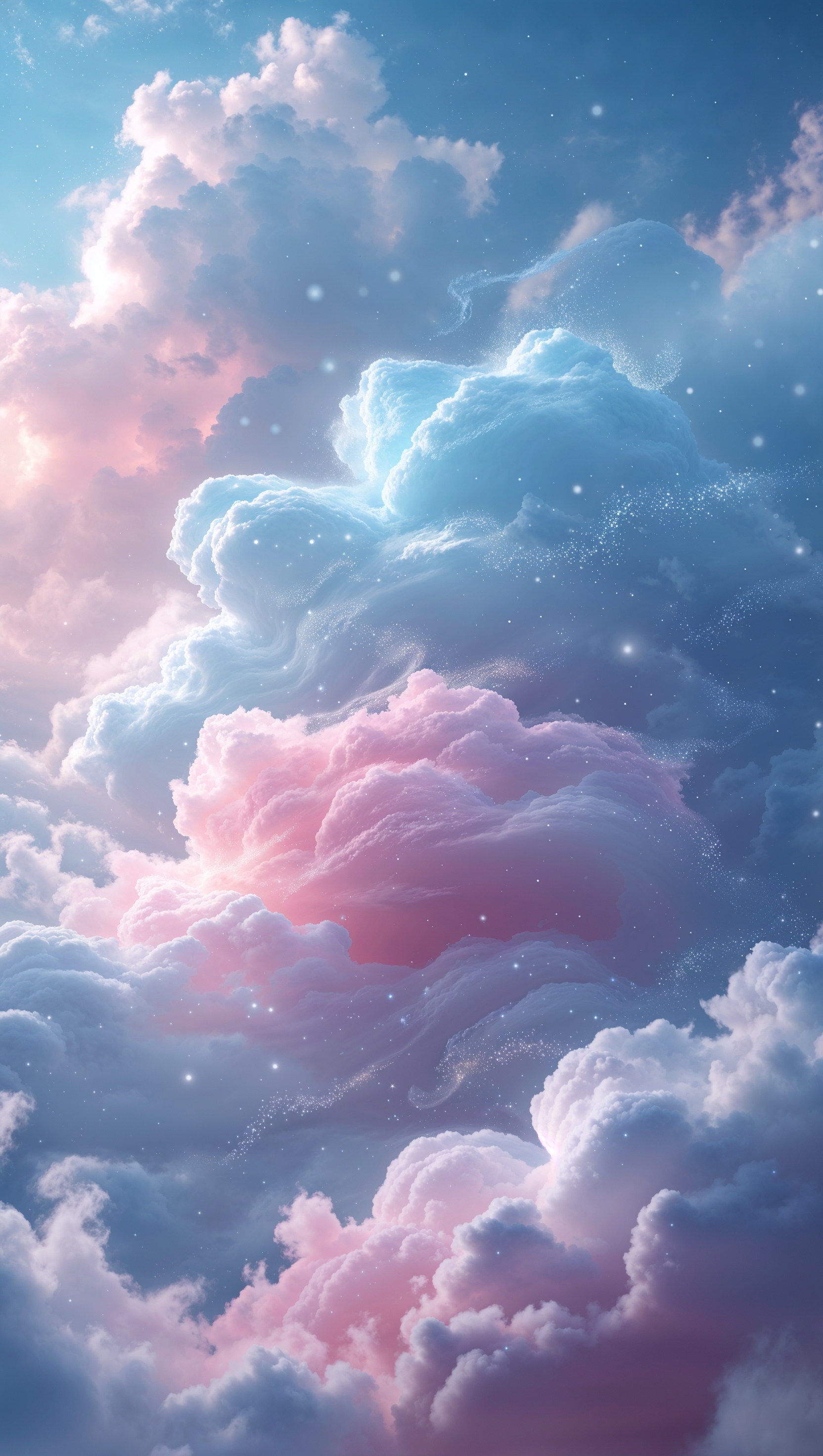 1664x2944 Dreamy sparkly cloud texture in pastel blue and pink tones