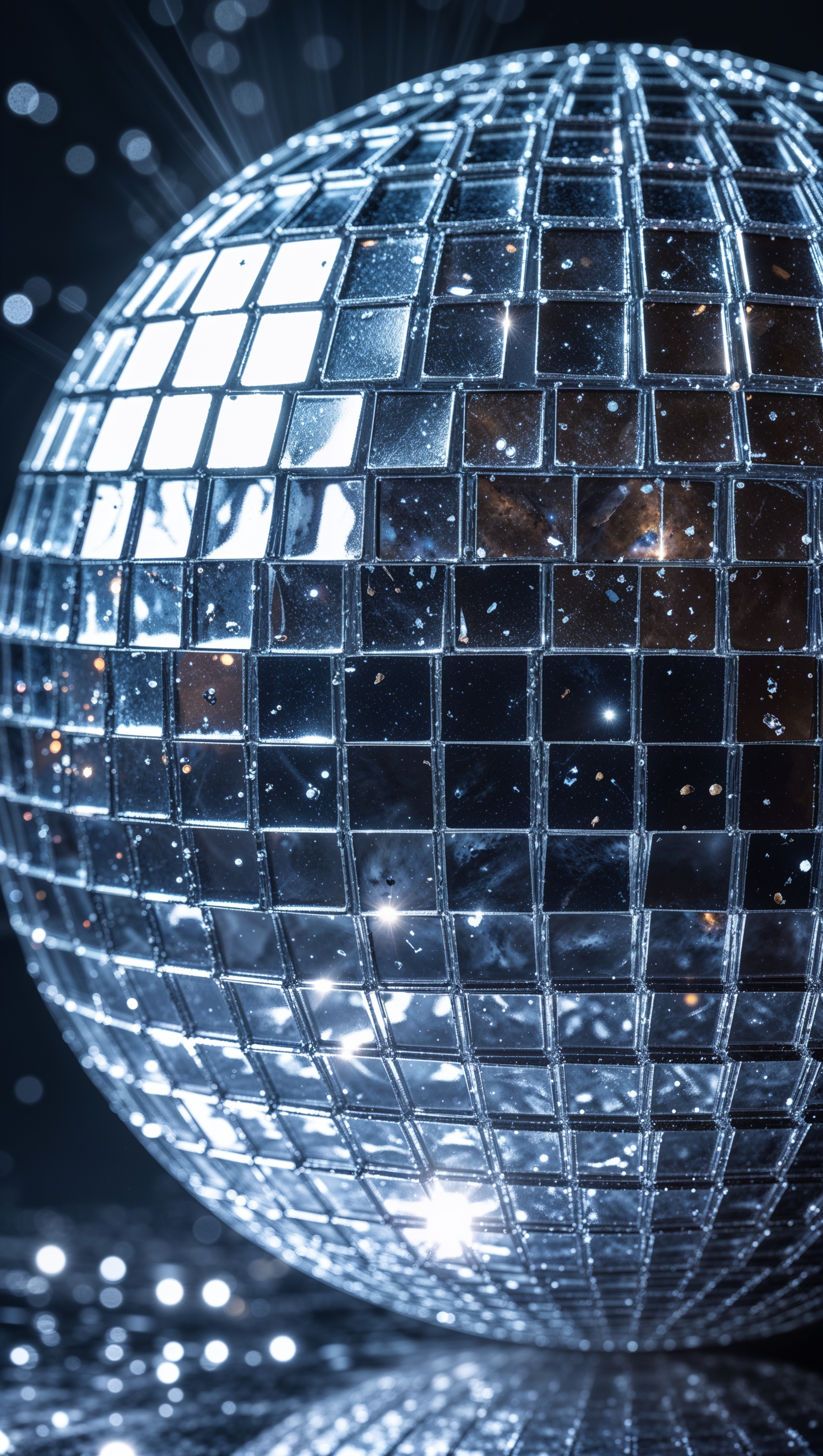 1664x2944 Sparkly disco ball texture in silver, glowing with reflective sparkles