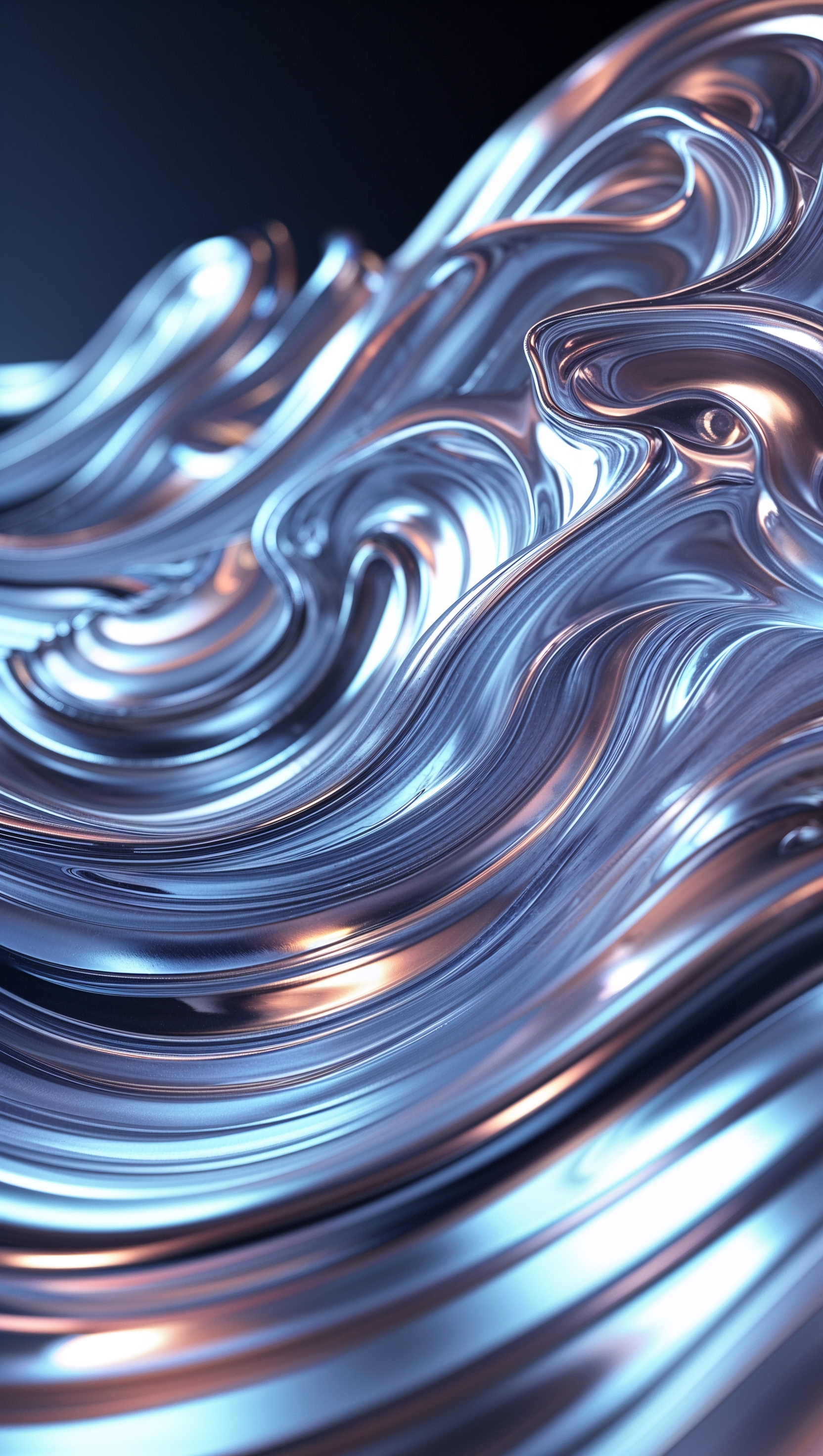 1664x2944 Glittering abstract waves in chrome and silver tones, futuristic look