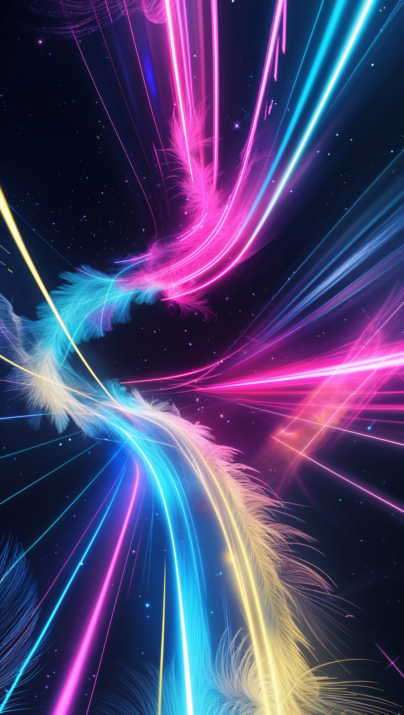 1664x2944 Futuristic abstract light trails on dark background, neon colors