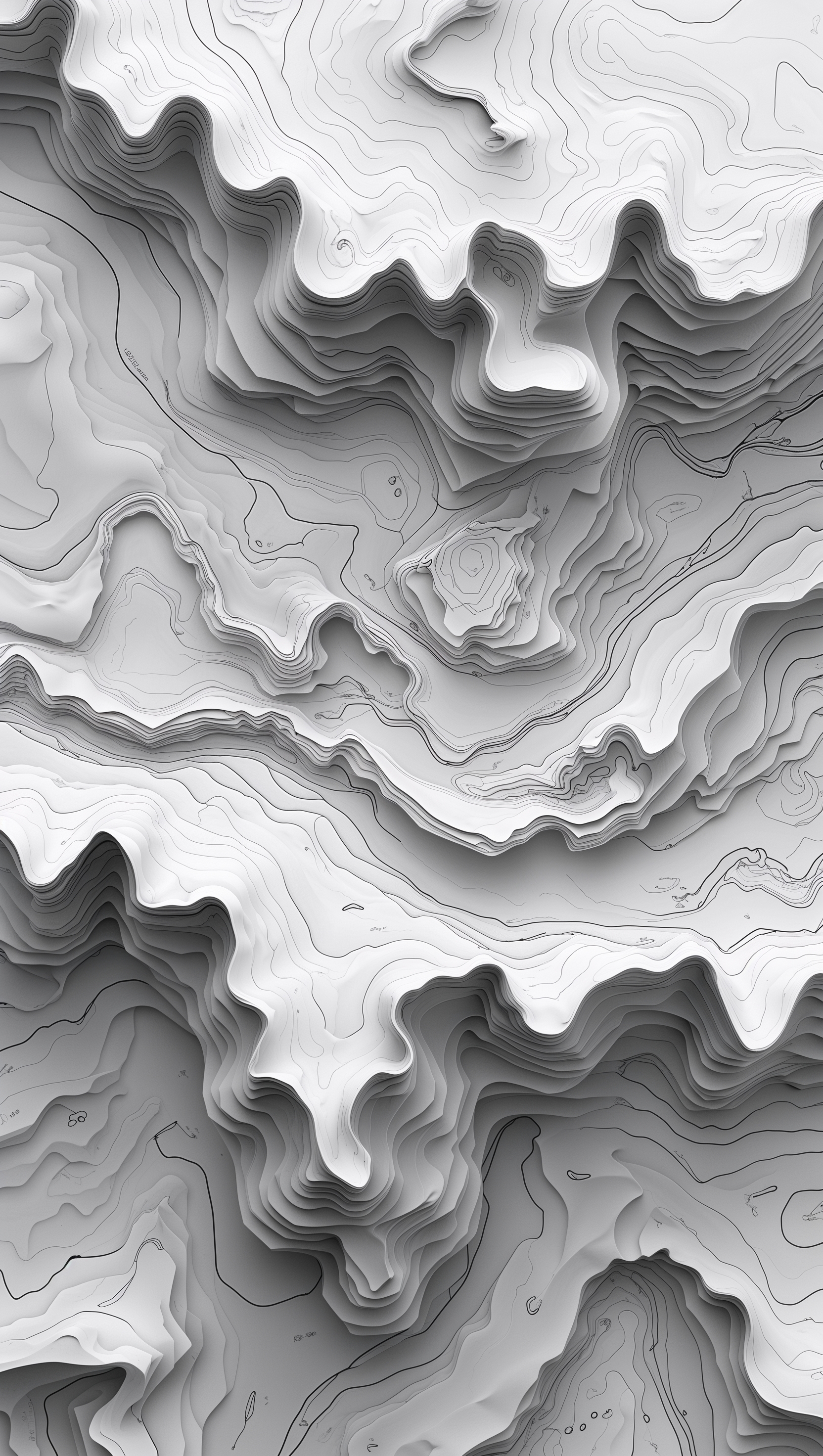 1664x2944 Topographic abstract map lines with elevation effect in monochrome