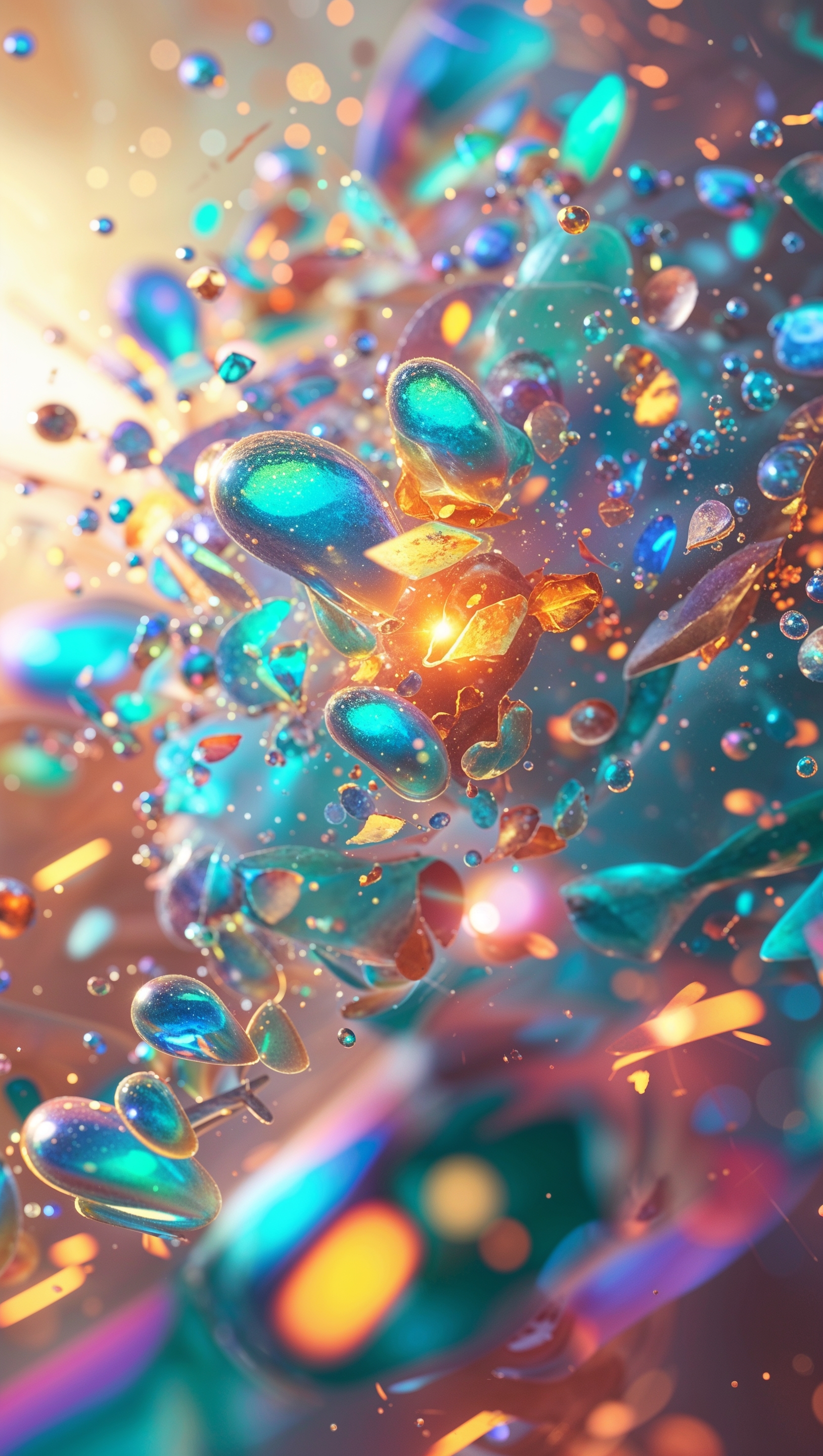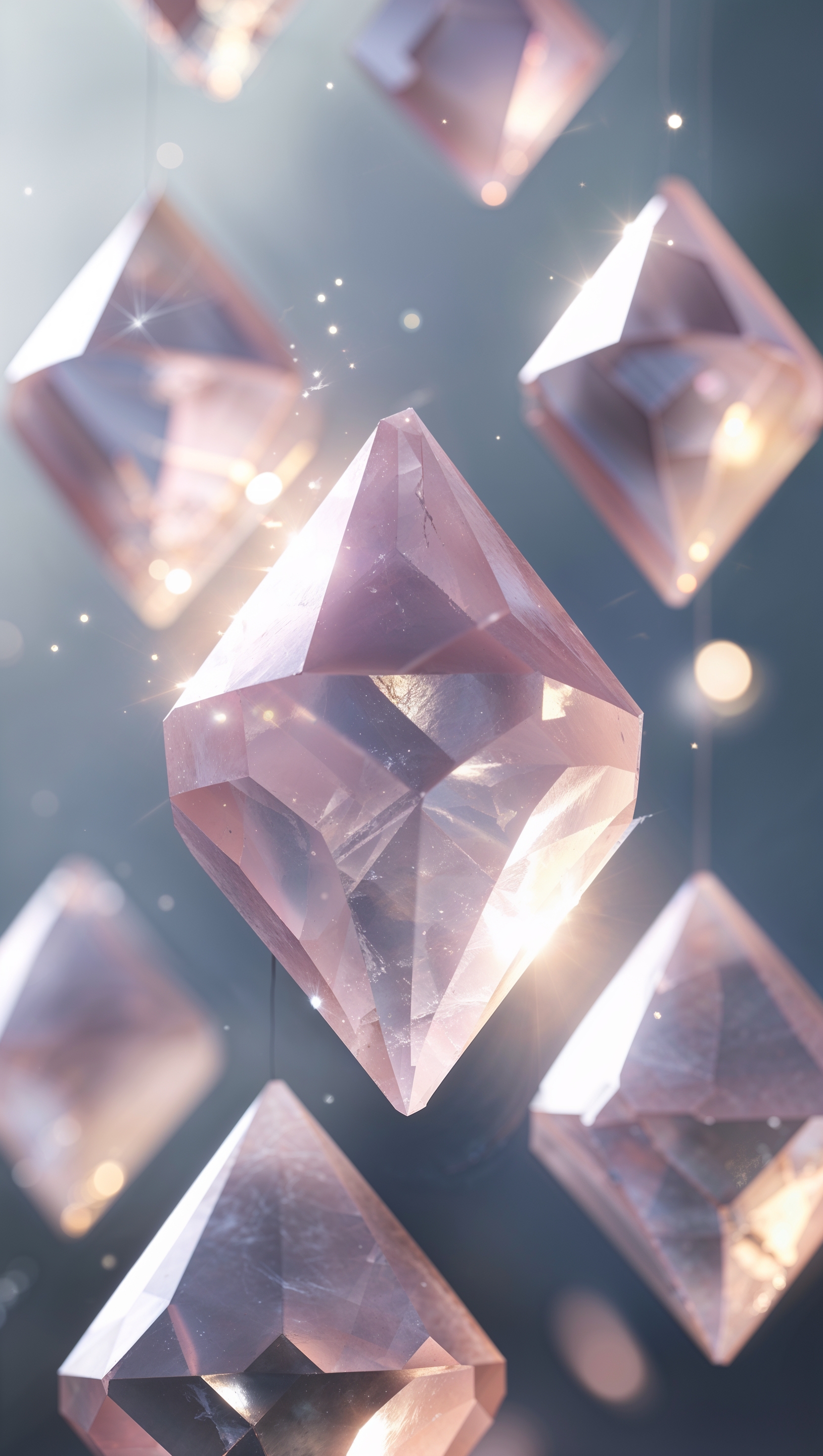 1664x2944 Abstract crystal shapes with transparency and pastel color light
