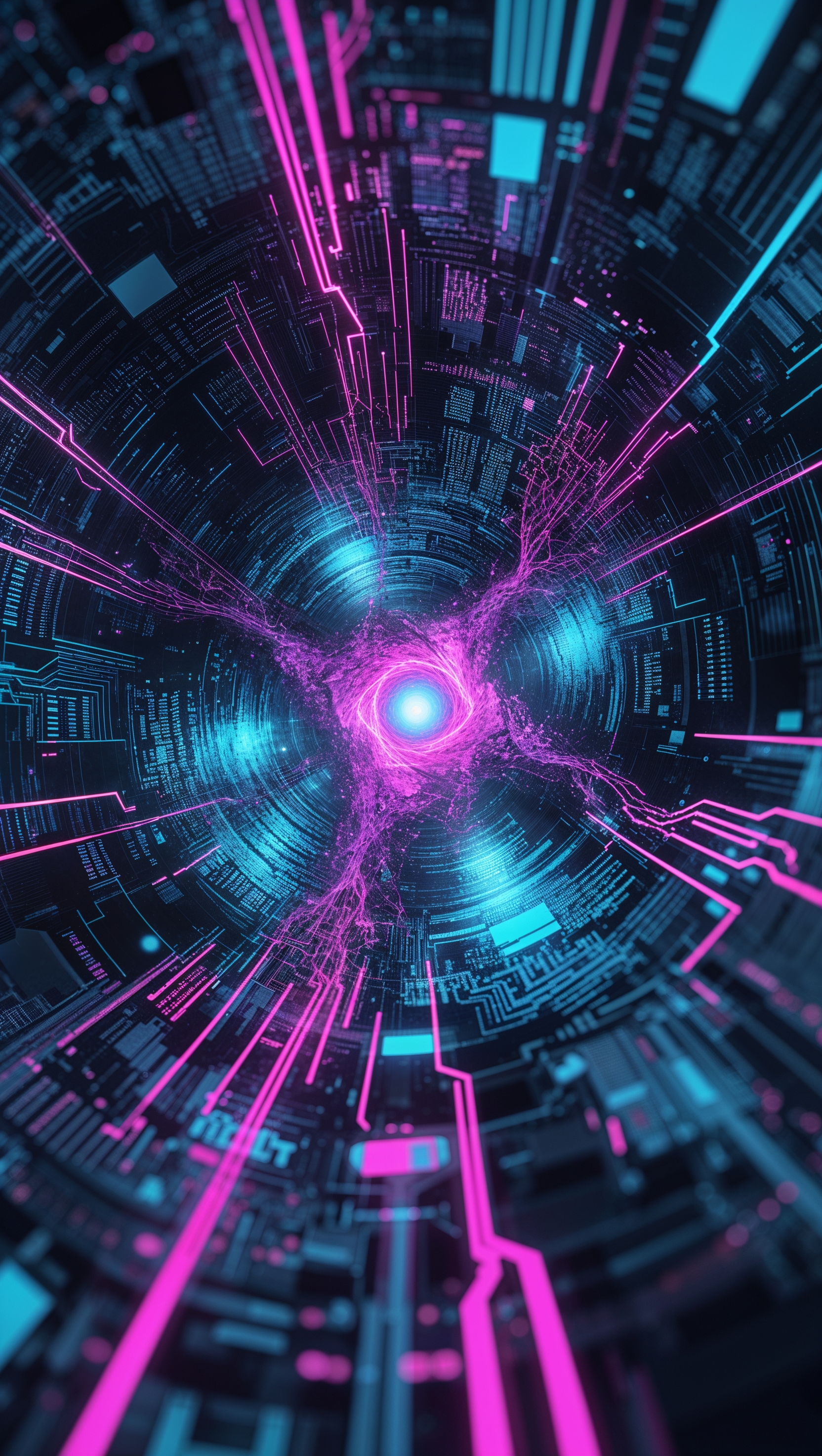 1664x2944 Abstract cyberpunk glitch pattern with blue and magenta distortion