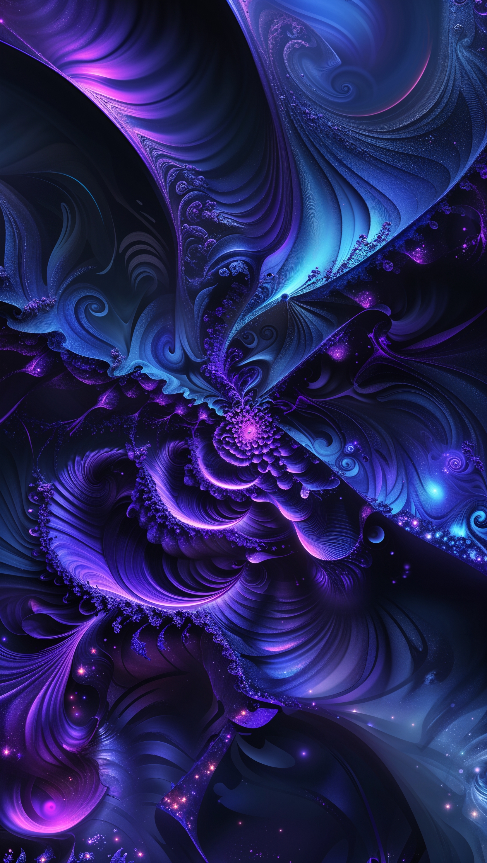 1664x2944 AI-generated fractal art in deep blue and violet tones, mysterious depth