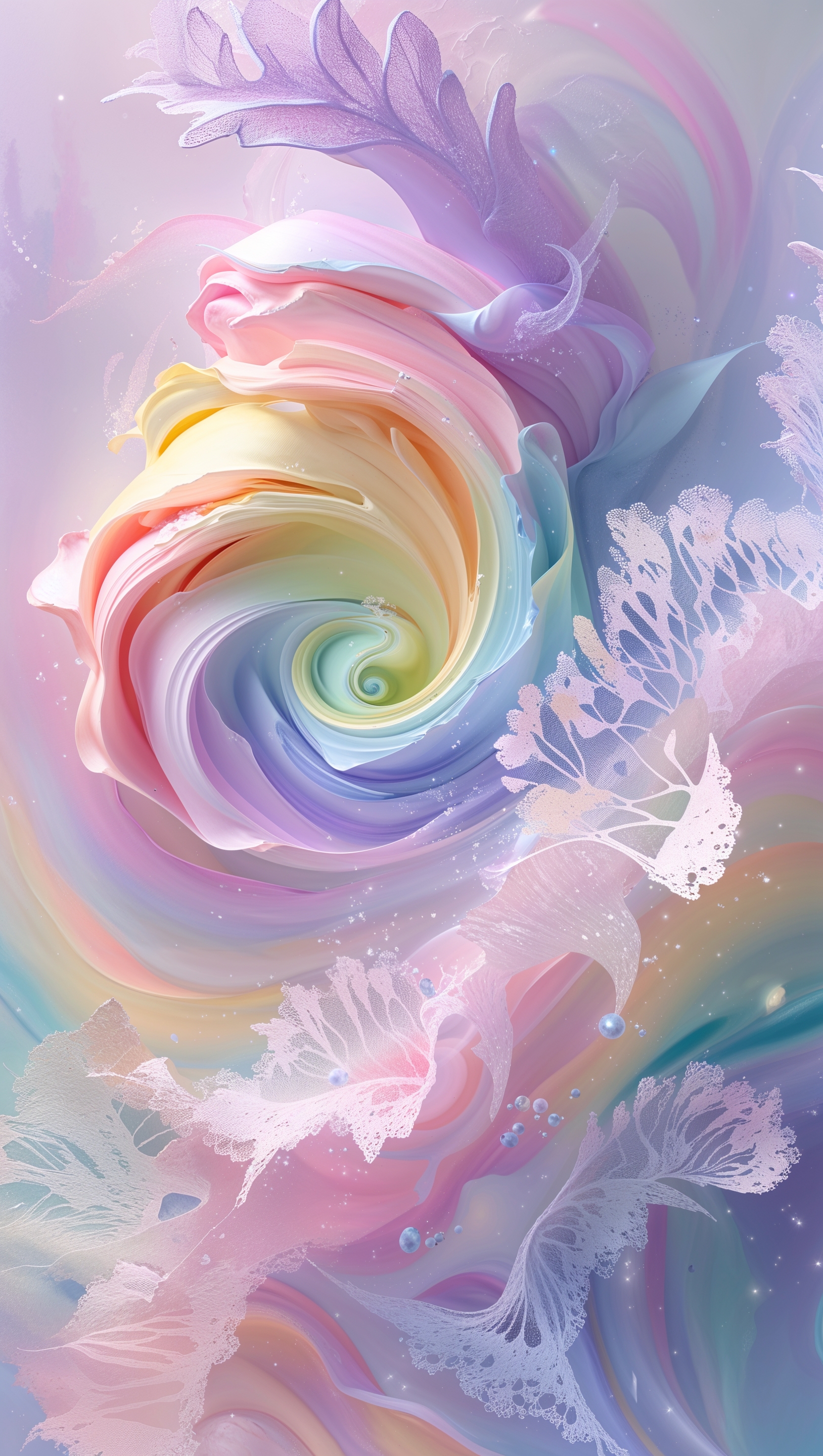 1664x2944 Acrylic paint abstract swirls in rainbow pastel tones, dreamy blend