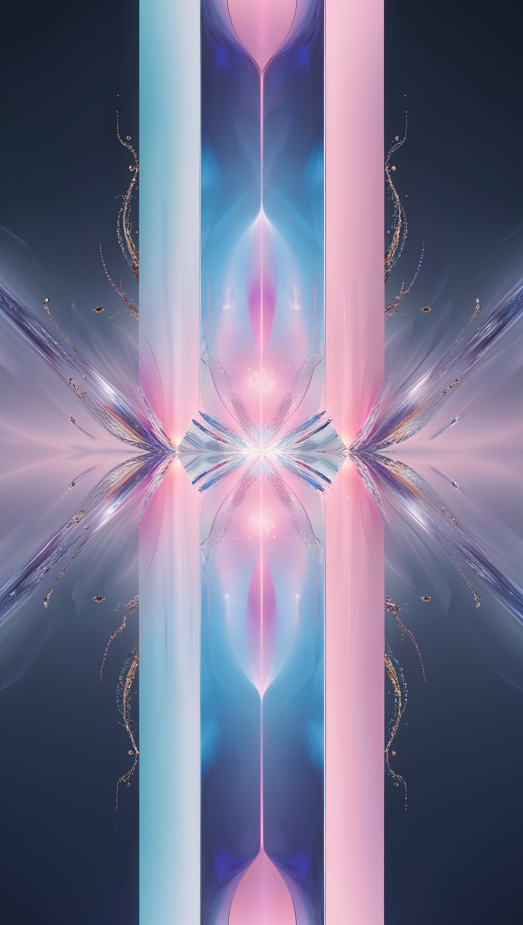 1664x2944 Vertical symmetrical abstract art with mirrored elements and soft neon tones