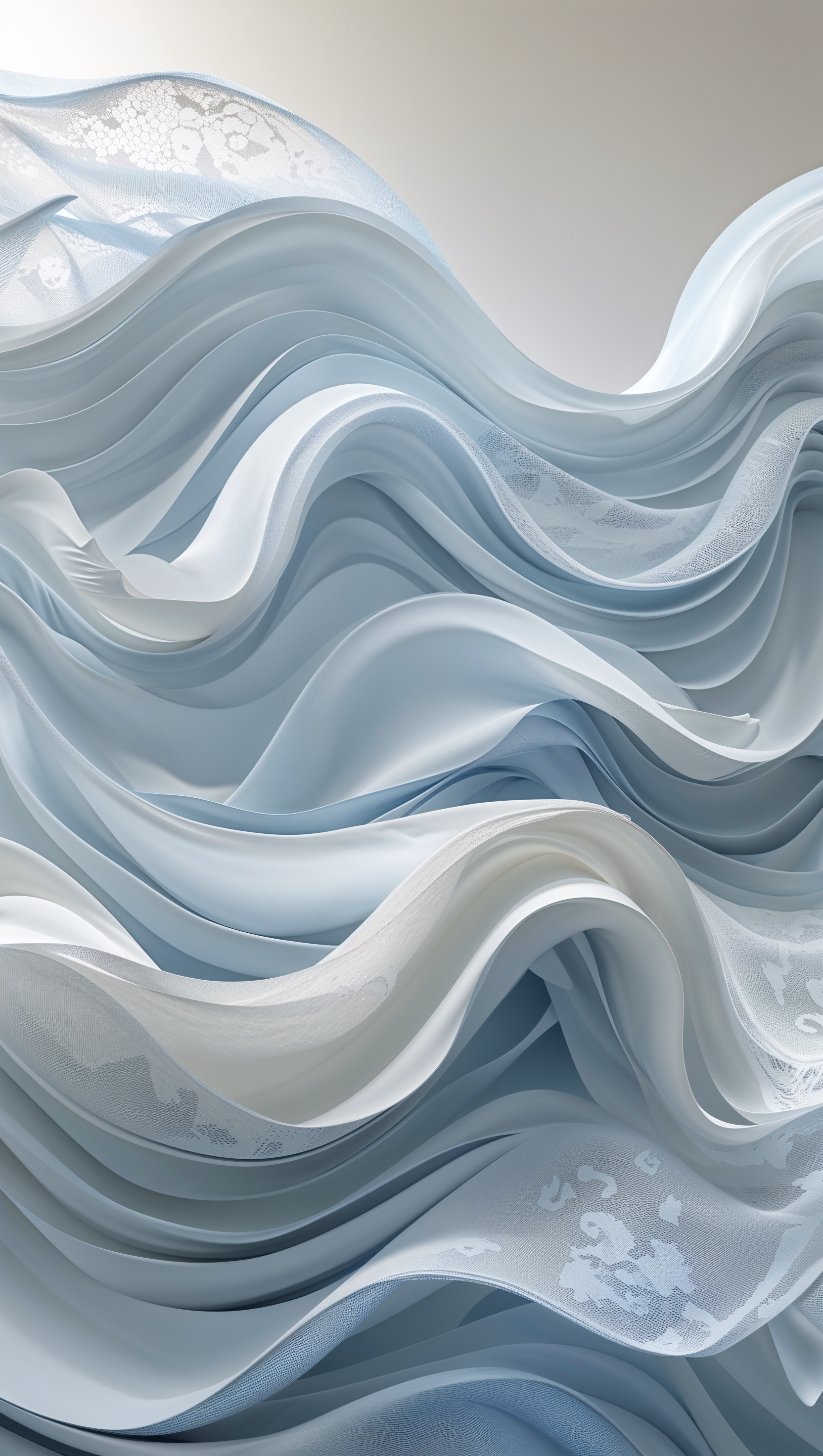 1664x2944 Abstract 3D render of soft fabric-like waves, flowing and elegant