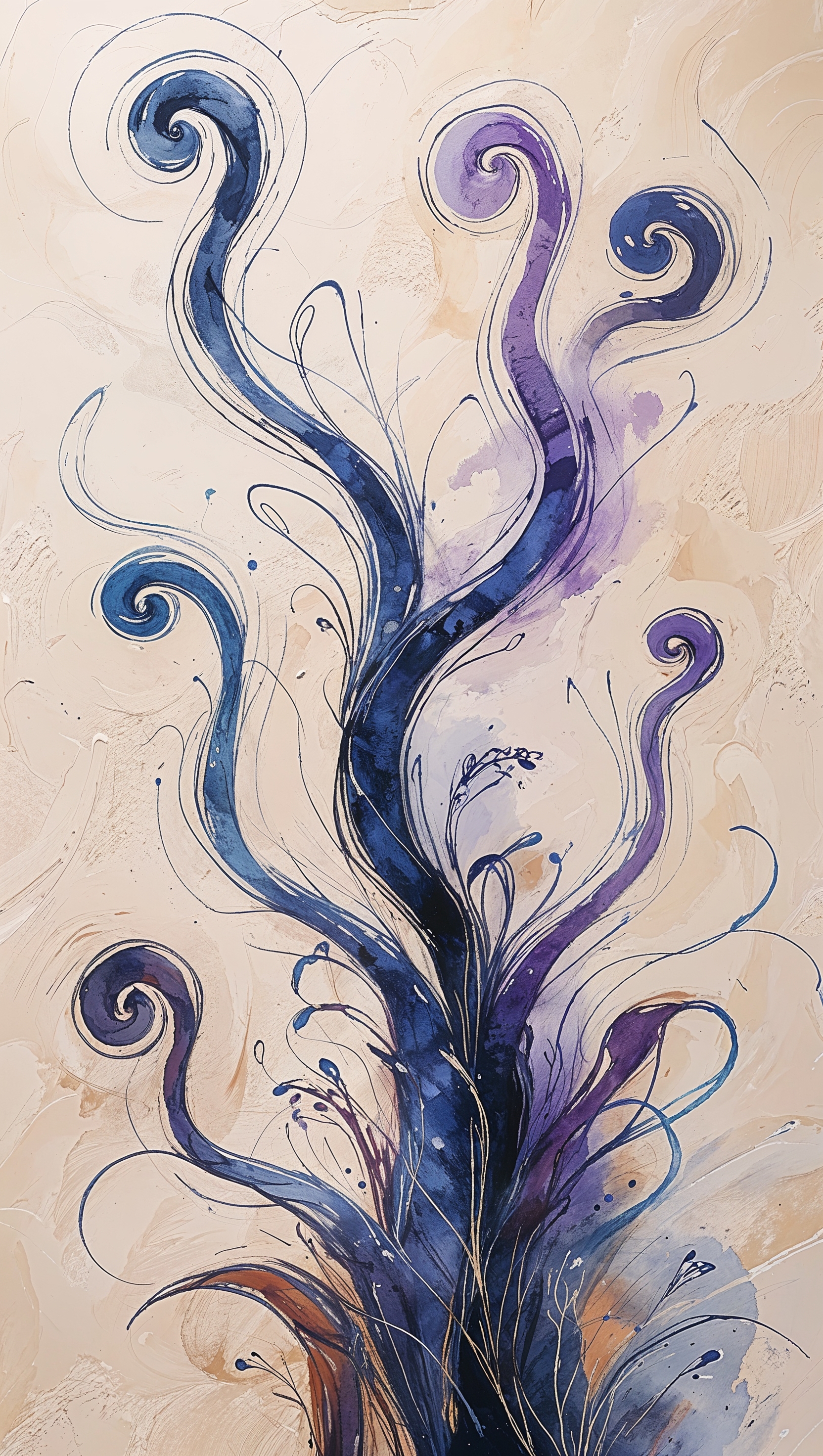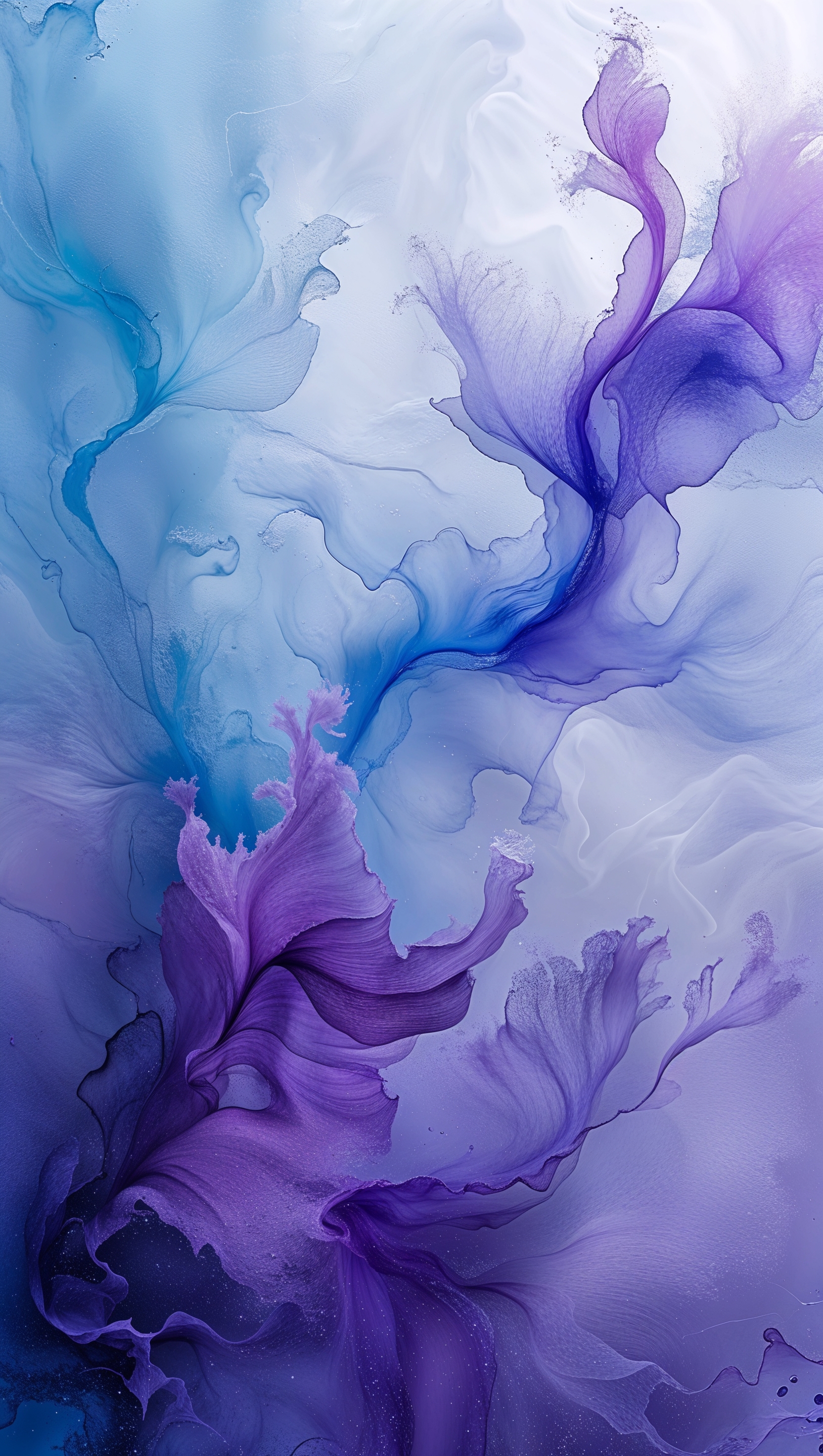 1664x2944 Abstract ink-in-water effect in soft blue and purple, delicate and fluid