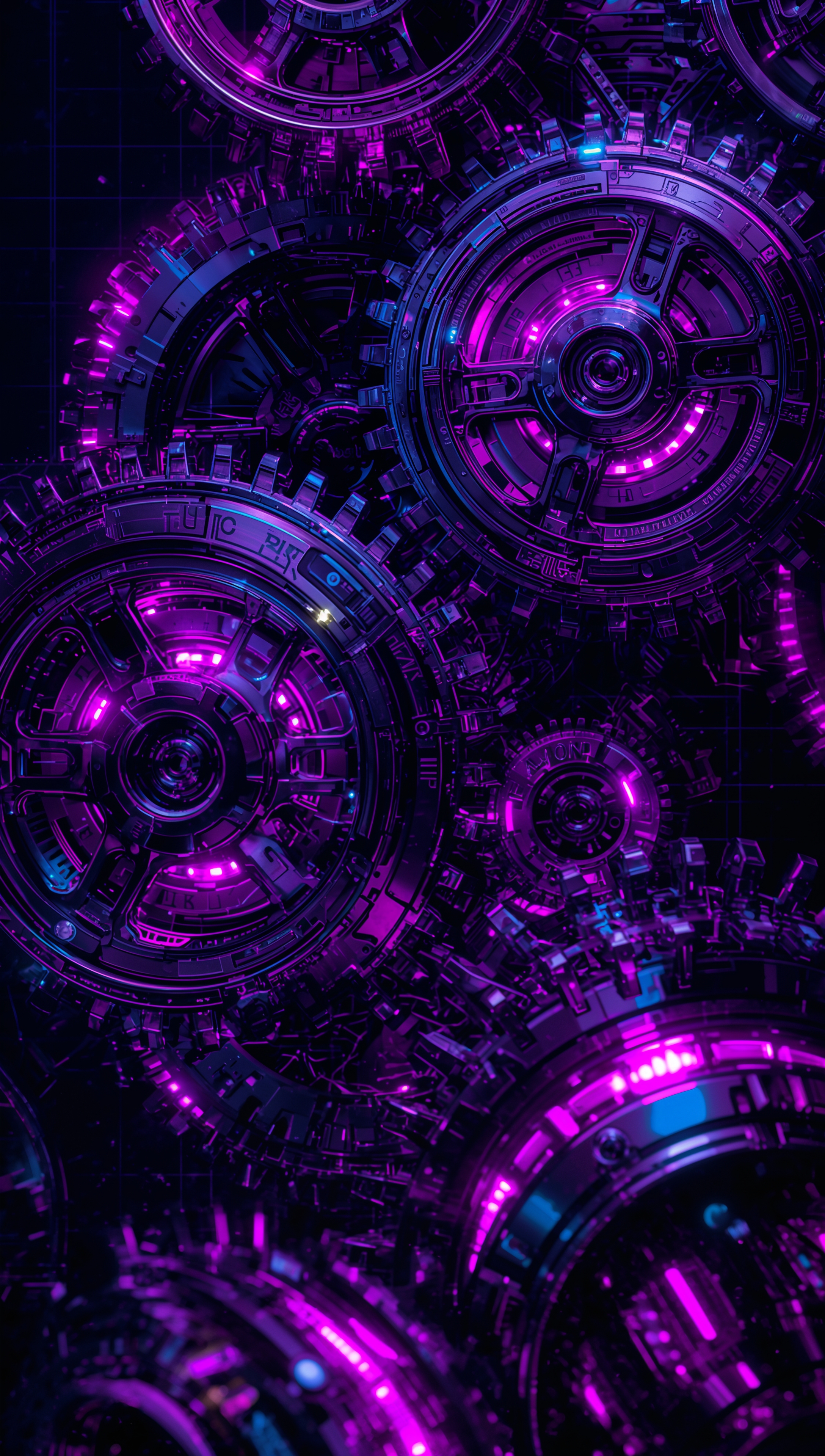 Dark Gears iPhone Wallpaper – Purple neon design 2176x3840 Dark Gears iPhone Wallpaper – Purple neon design