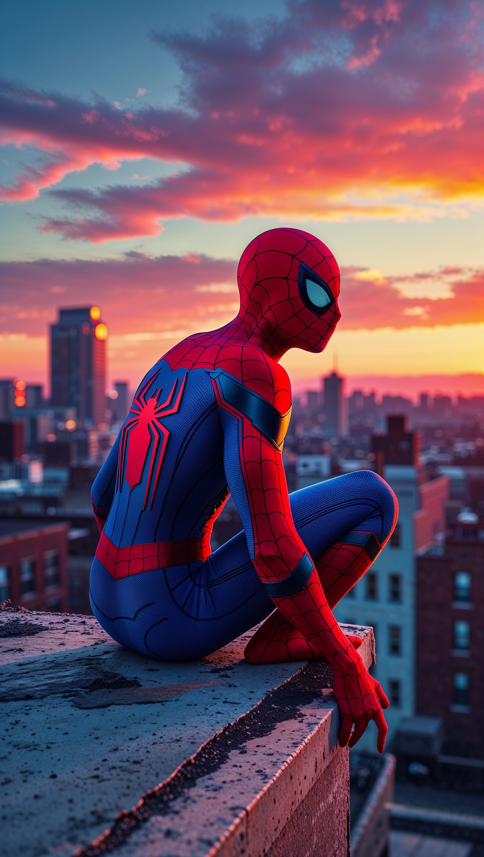 1664x2944 Spider-Man on a rooftop watching the sunset