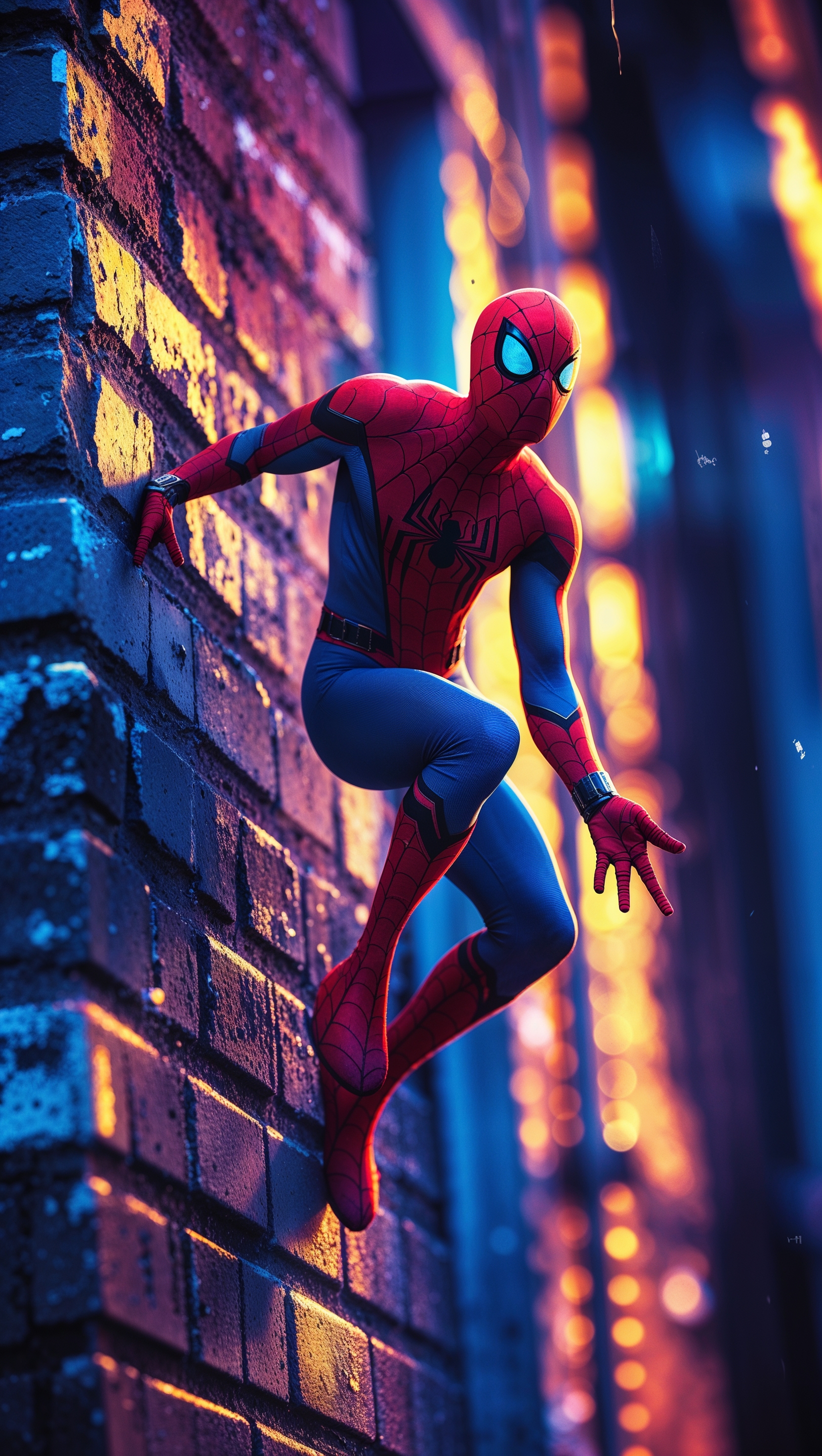 1664x2944 Cinematic shot of Spider-Man running on a wall