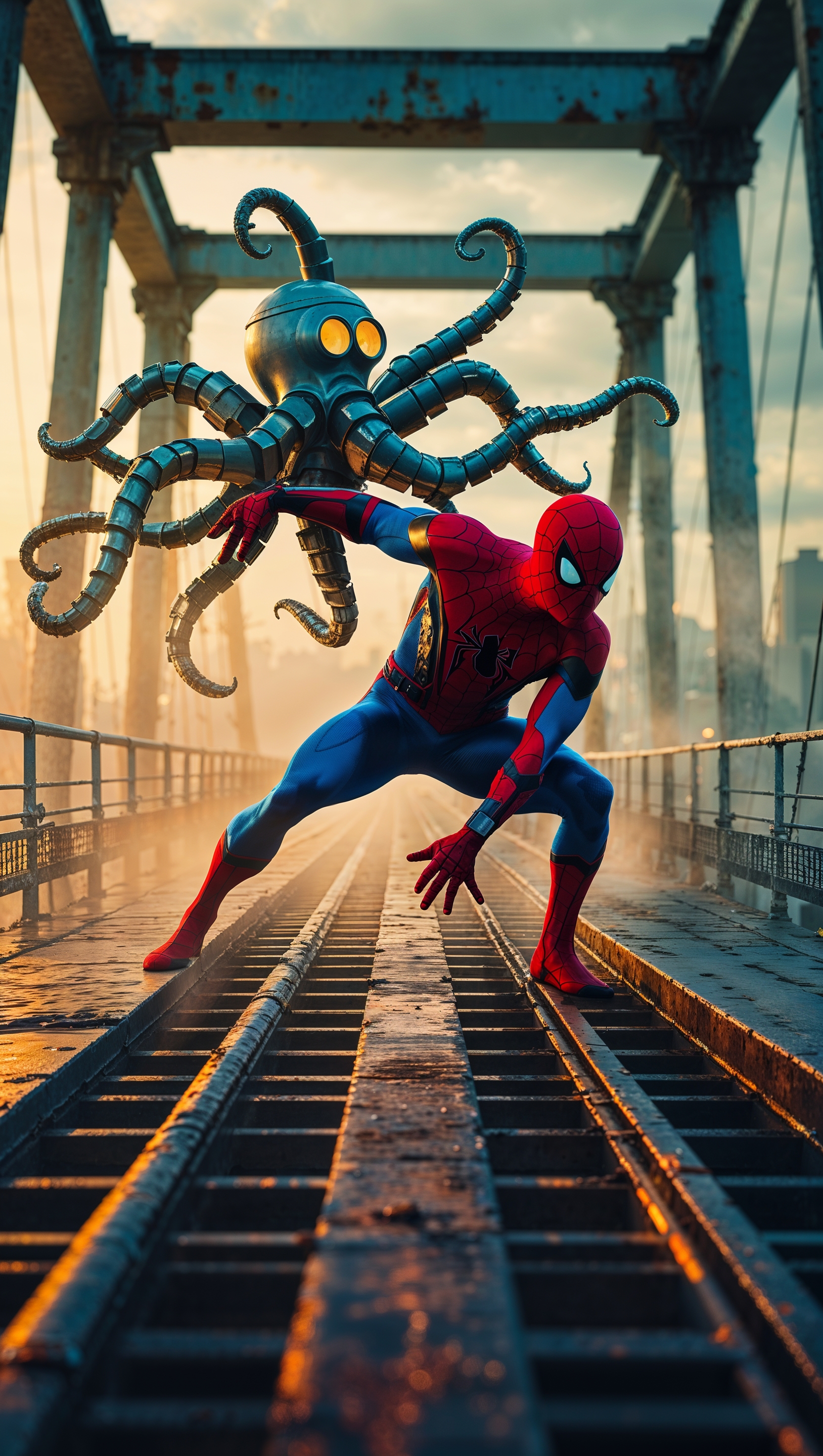 1664x2944 Spider-Man fighting Doctor Octopus on a bridge
