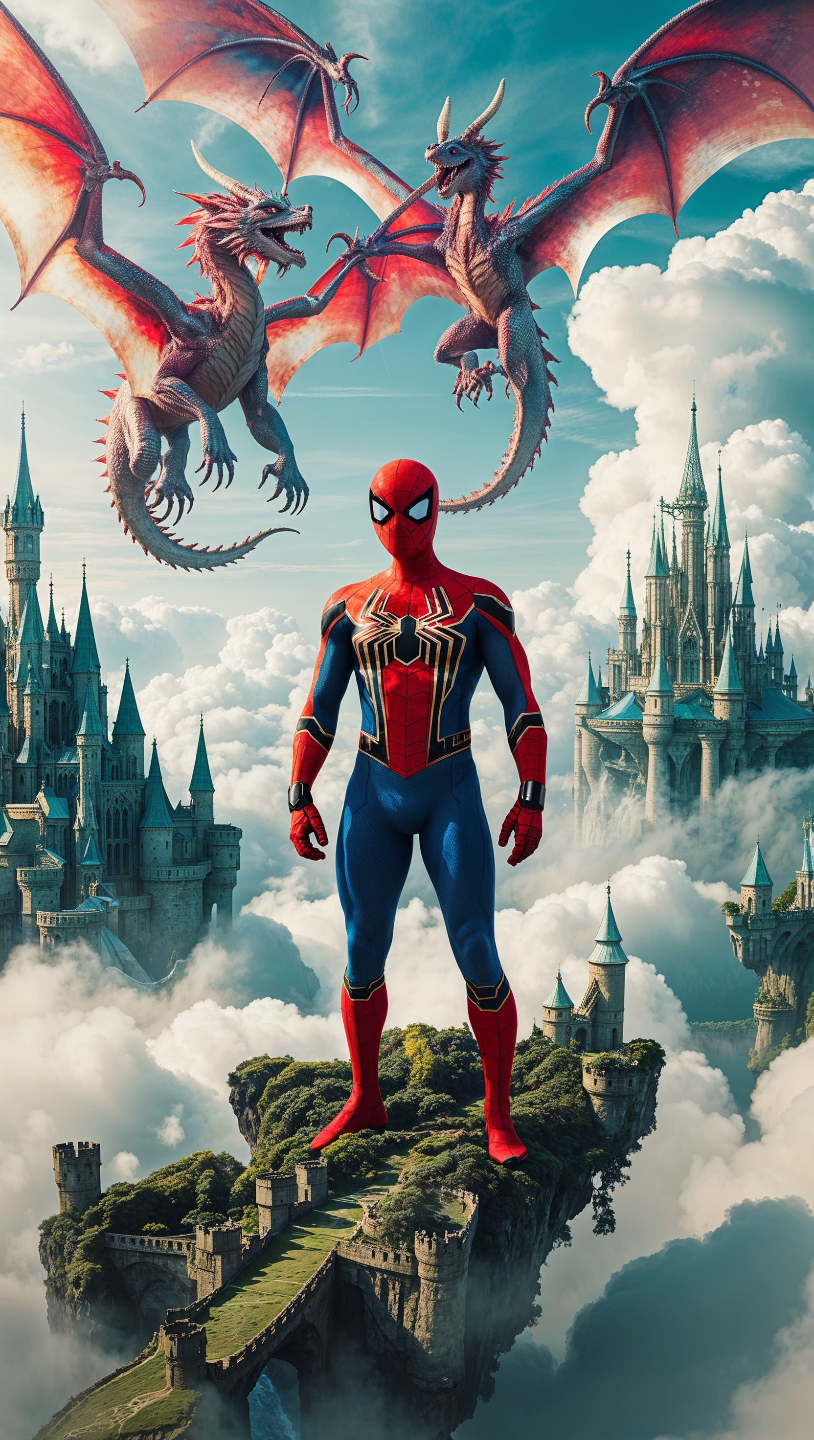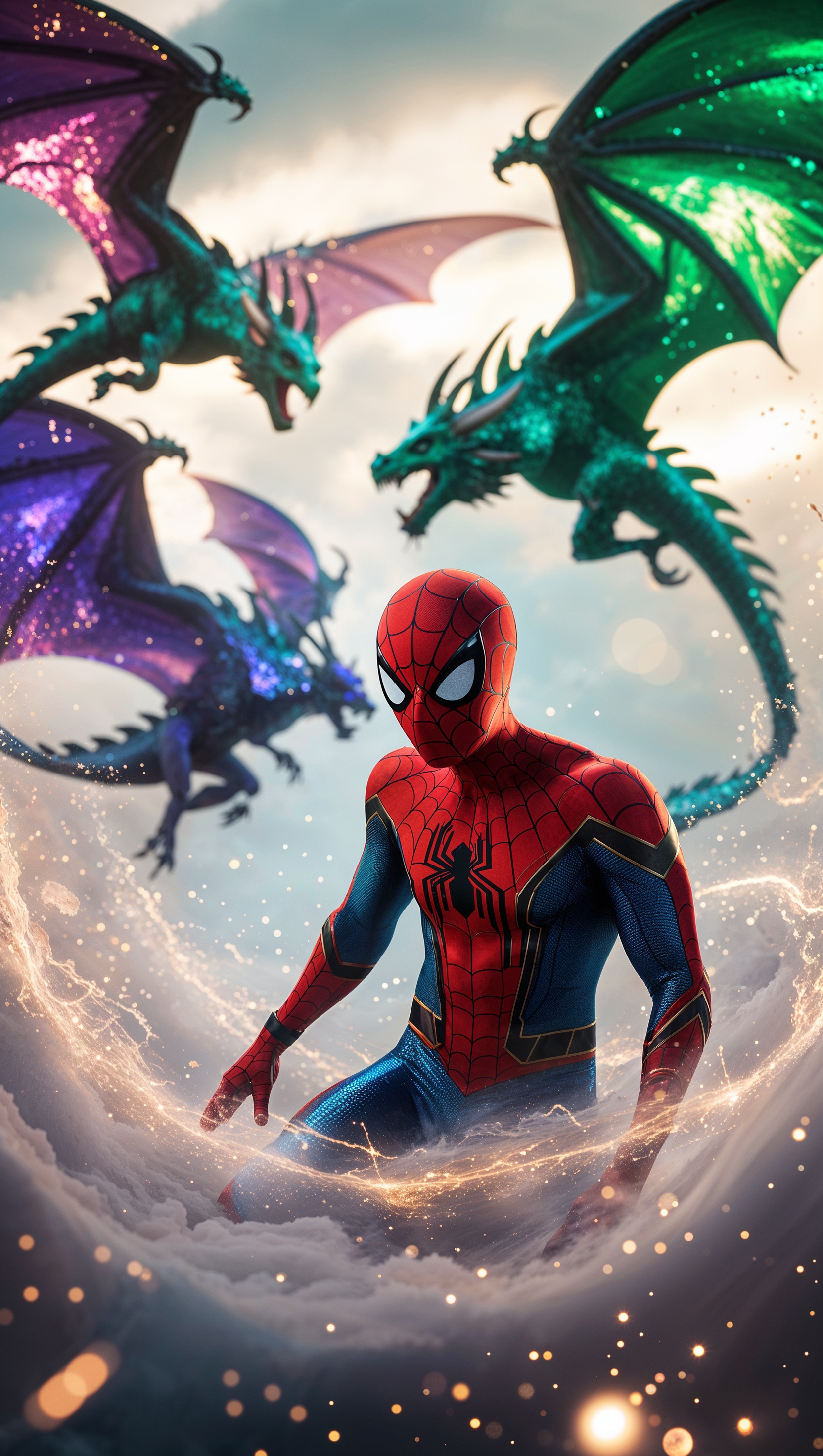 1664x2944 Fantasy Spider-Man with magic and flying dragons