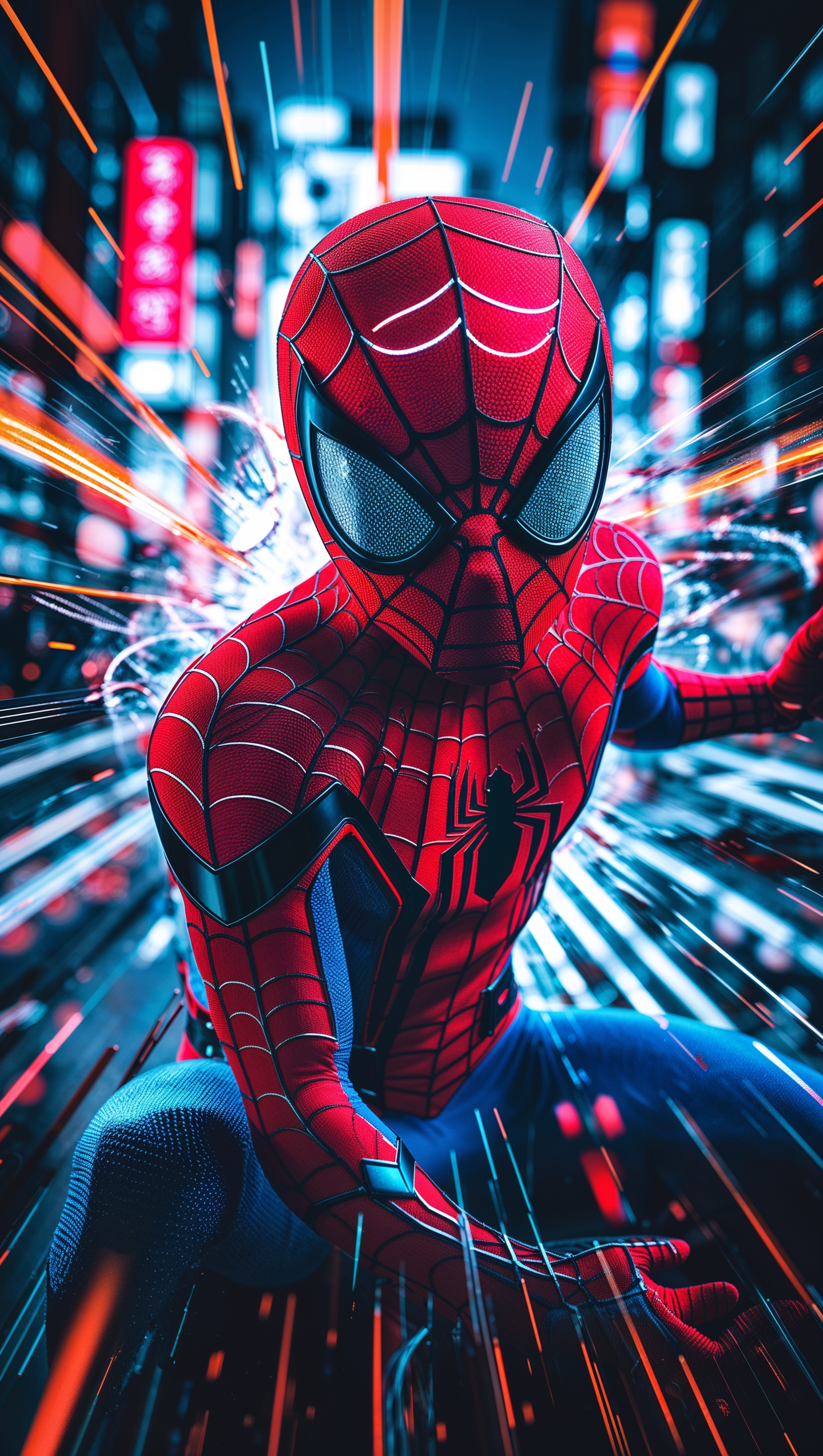 1664x2944 Spider-Man in Japanese anime style with glowing action effects