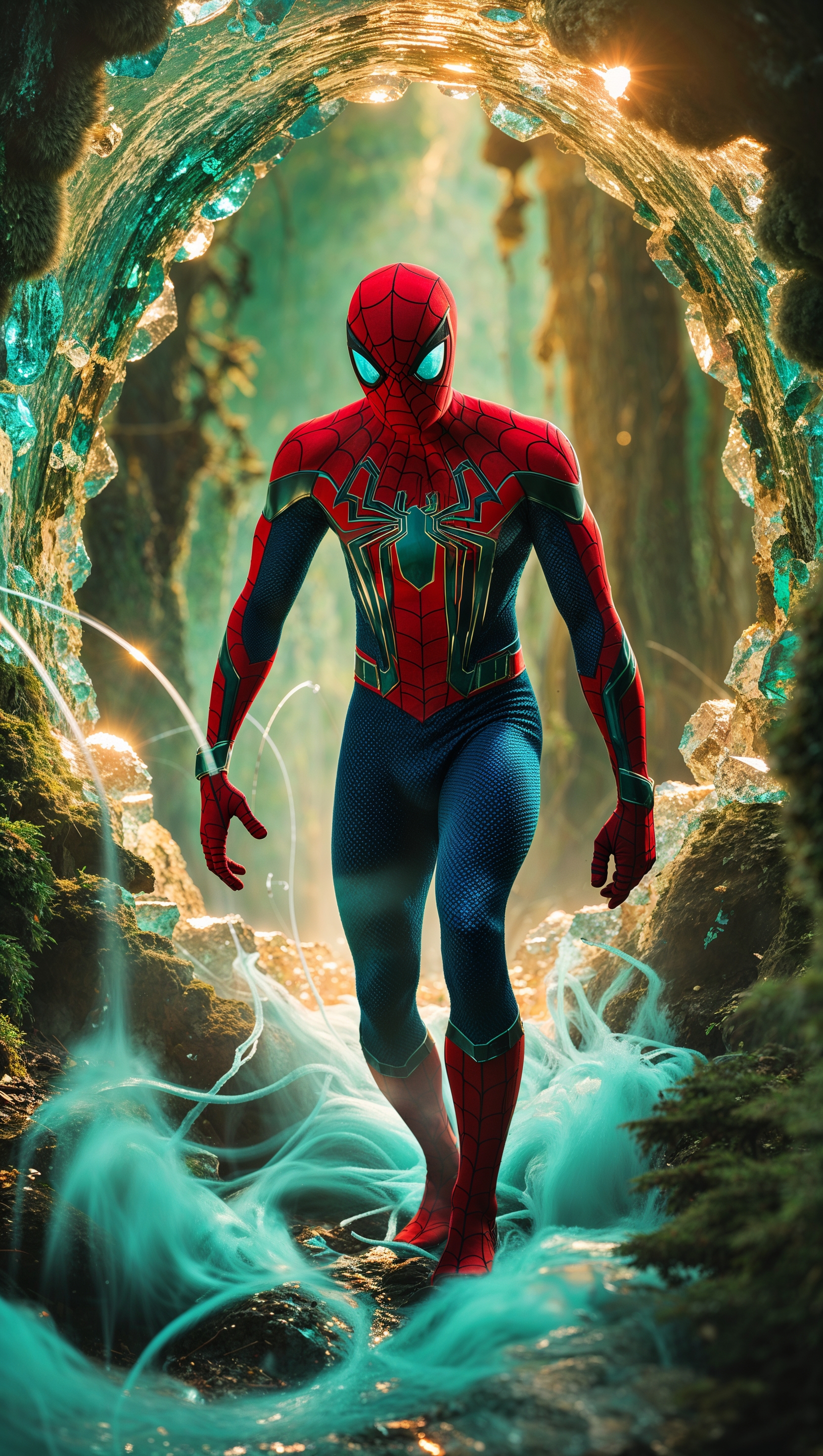 1664x2944 Spider-Man stepping through a magical portal to another world