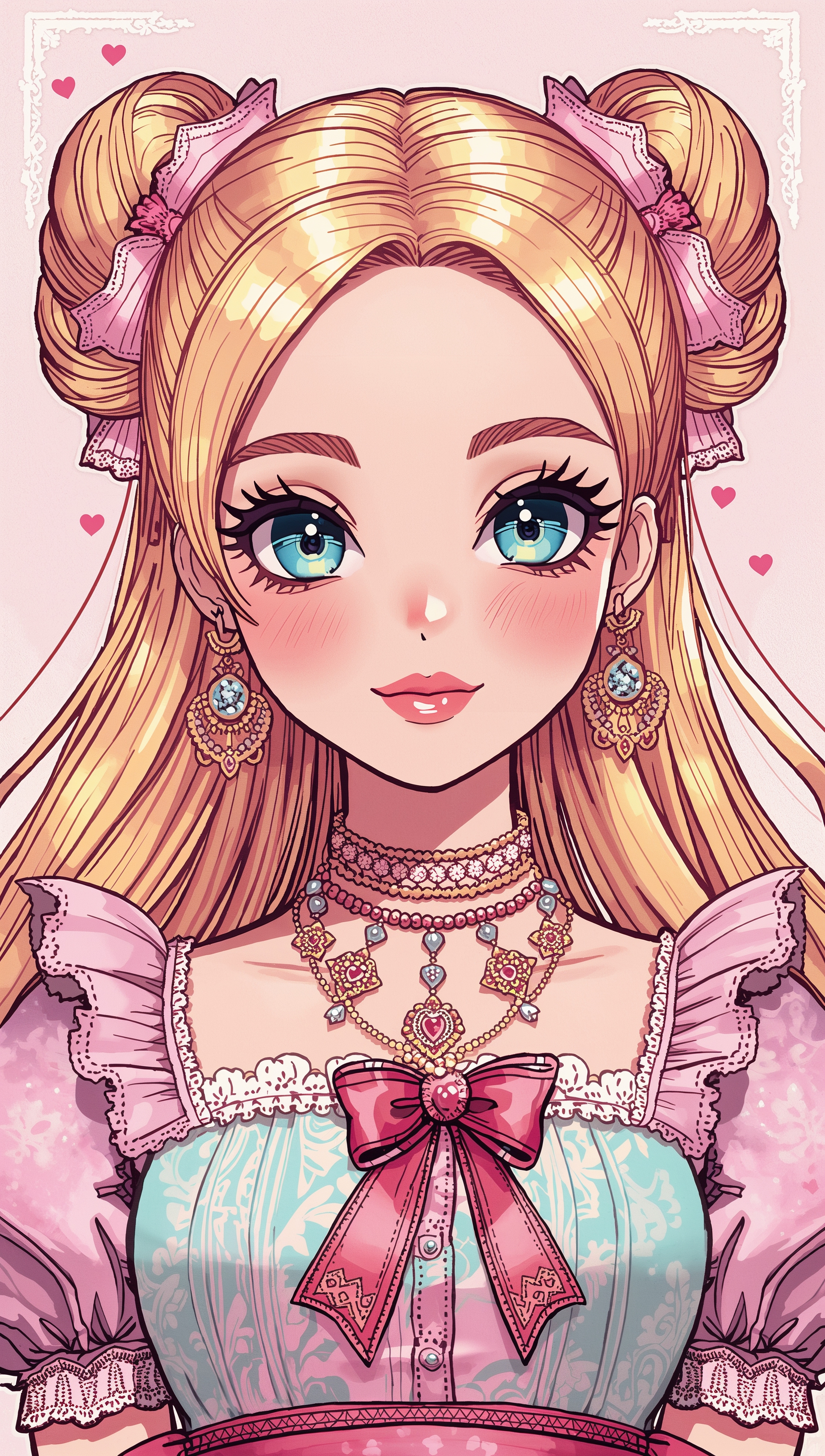 Barbie anime style illustration, kawaii look, 4K 2176x3840 Barbie anime style illustration, kawaii look, 4K