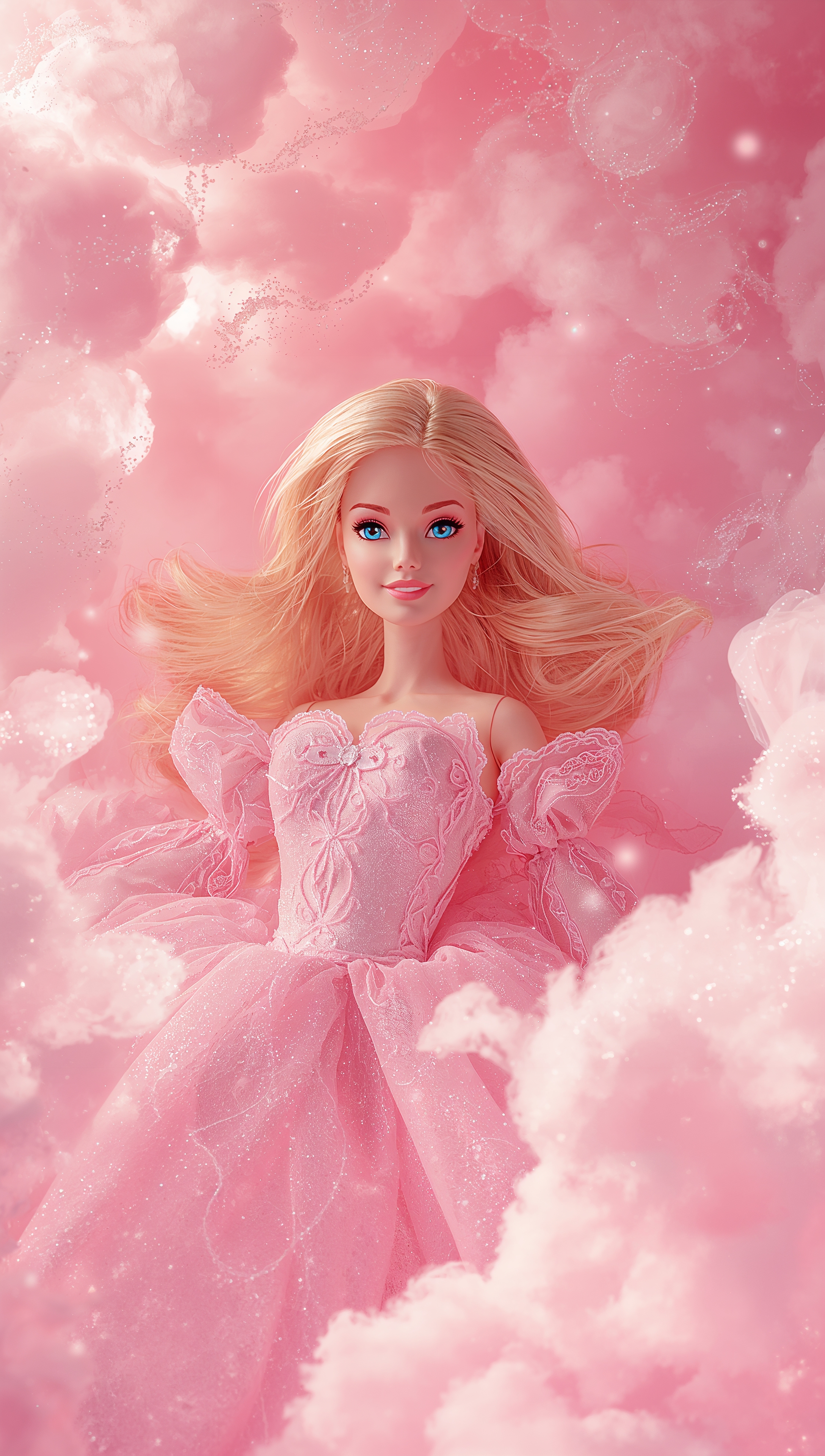 Barbie in dreamy pink clouds, magical vibe, 4K 2176x3840 Barbie in dreamy pink clouds, magical vibe, 4K