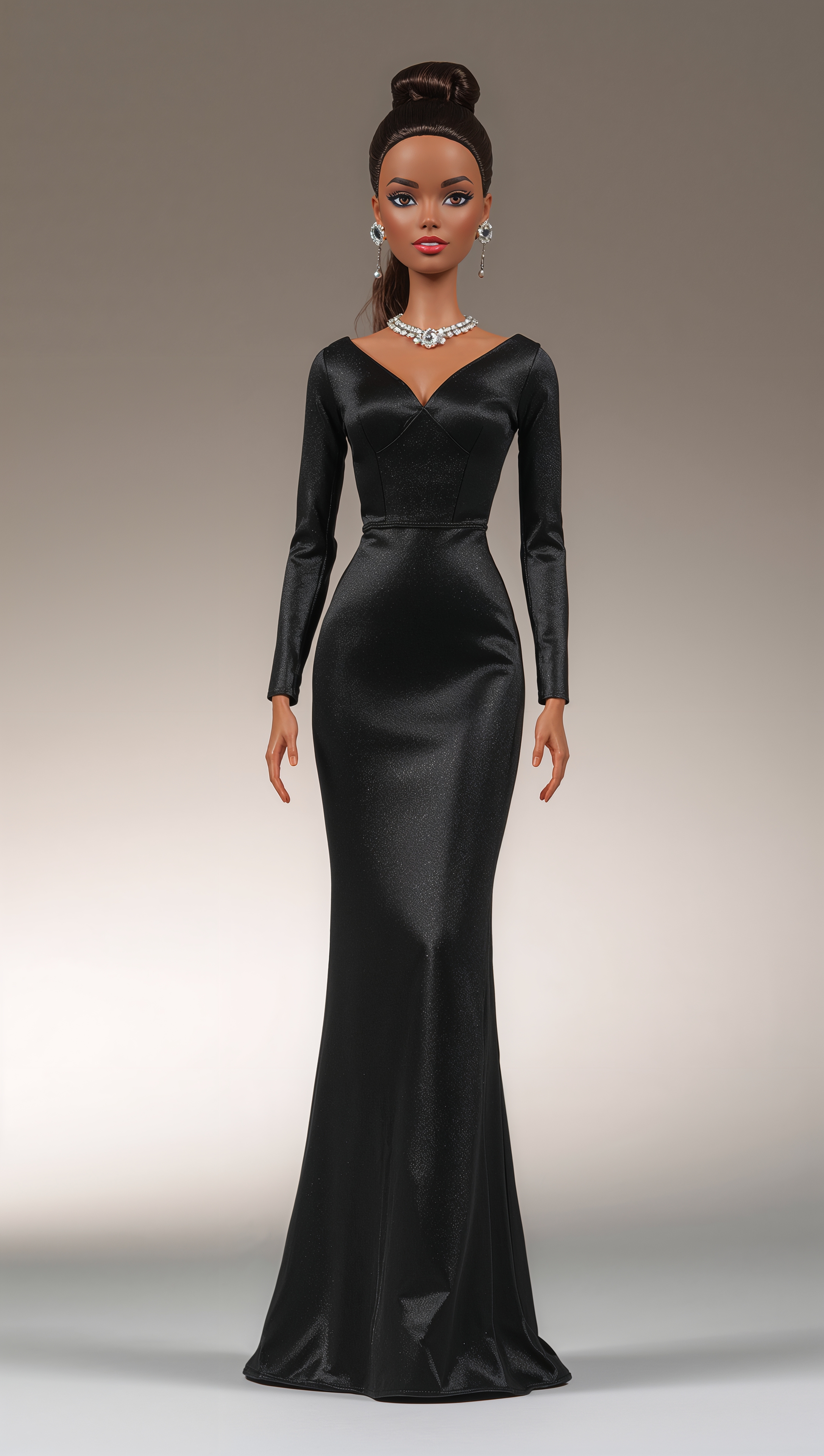 Barbie in elegant black dress, minimal background, 4K 2176x3840 Barbie in elegant black dress, minimal background, 4K