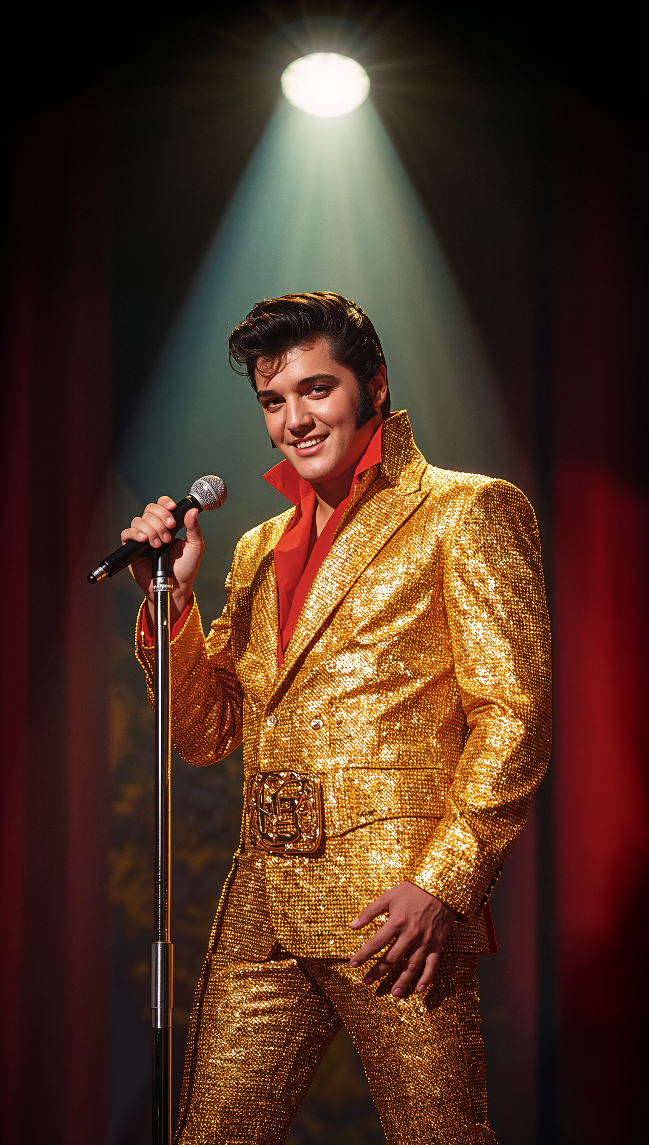 Elvis Presley iPhone wallpaper – golden mic portrait 2176x3840 Elvis Presley iPhone wallpaper – golden mic portrait