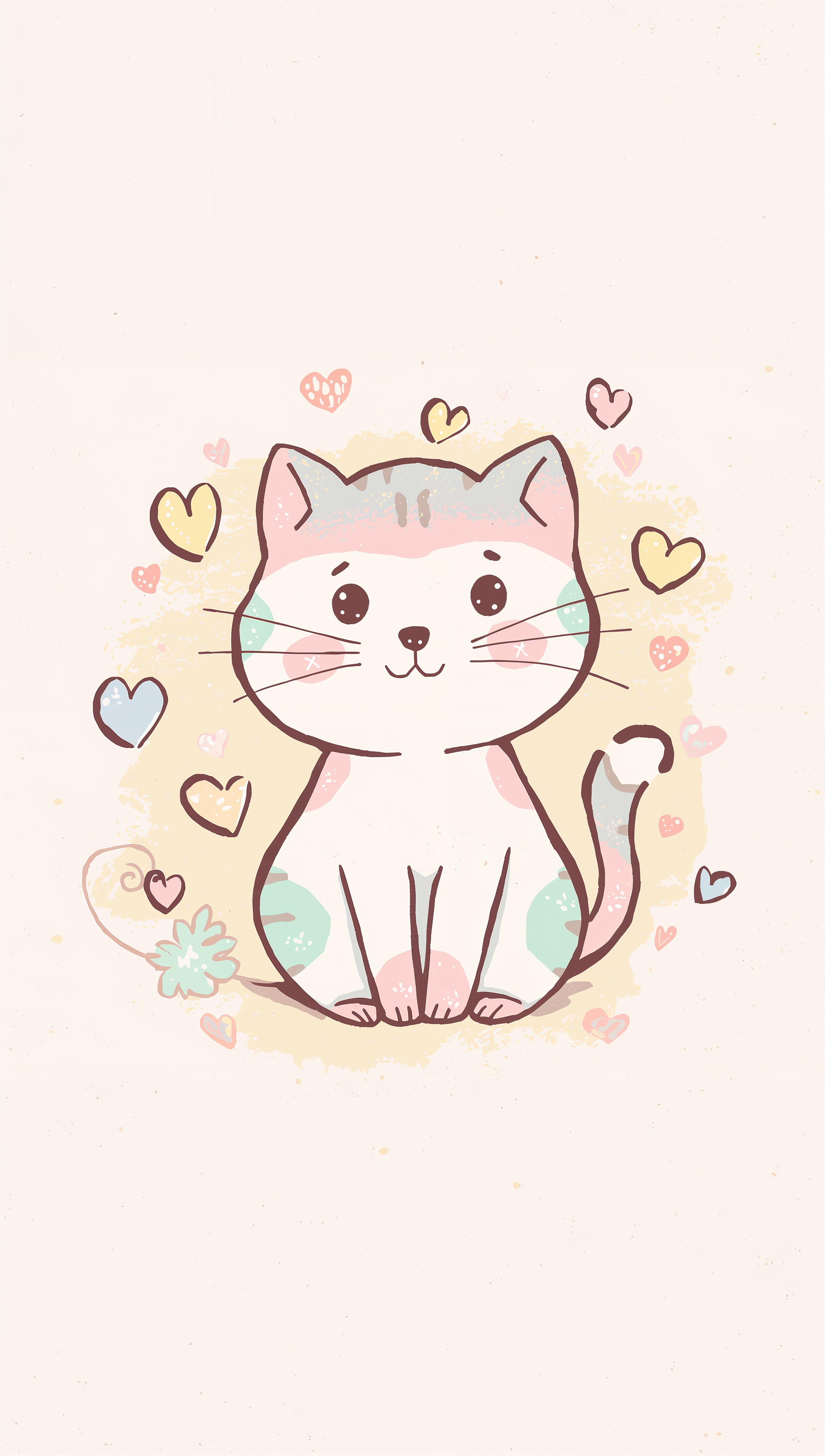2176x3840 Cat iPhone wallpaper – pastel cartoon cat with hearts
