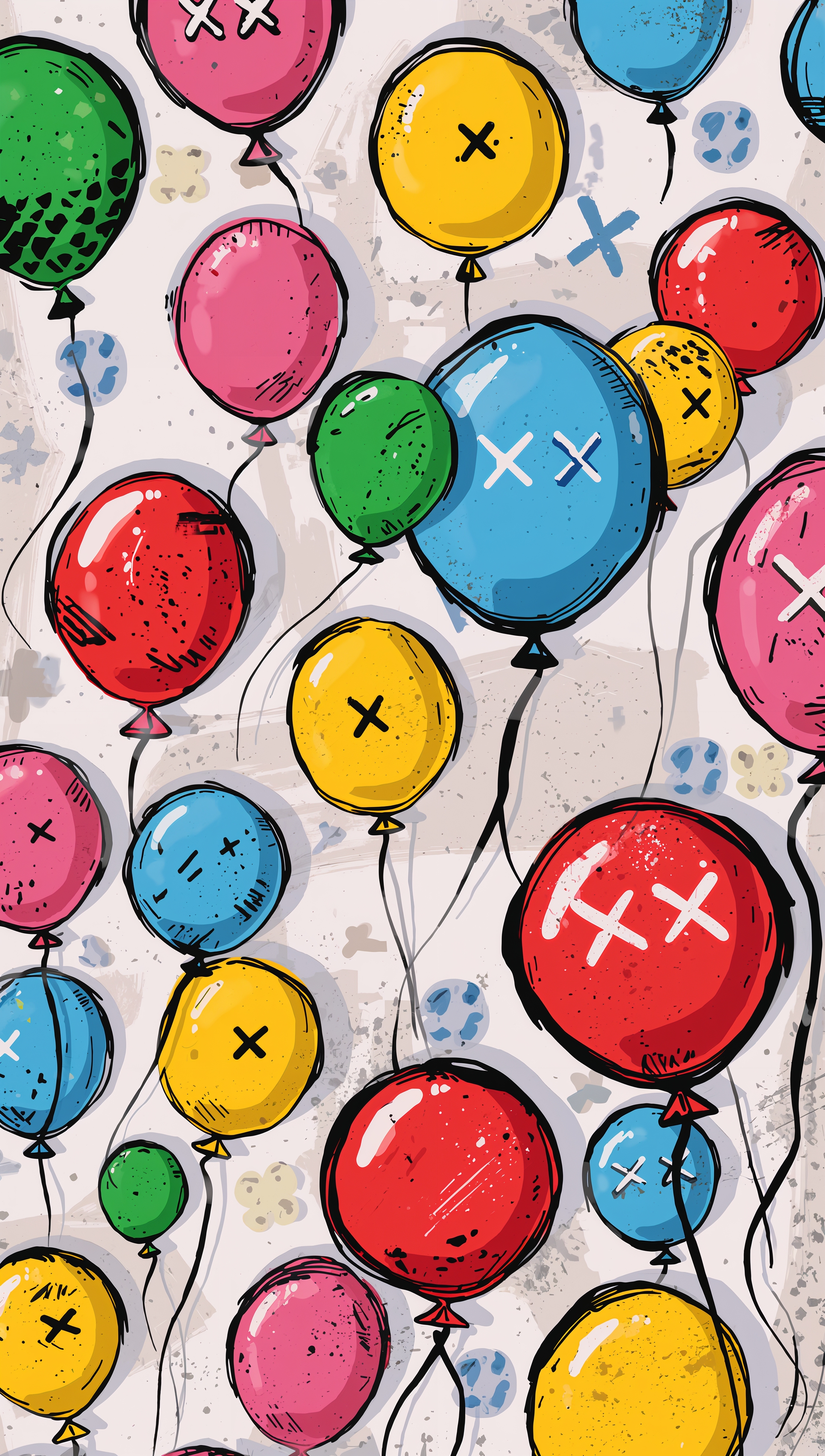 2176x3840 Kaws iPhone wallpaper – colorful floating balloons