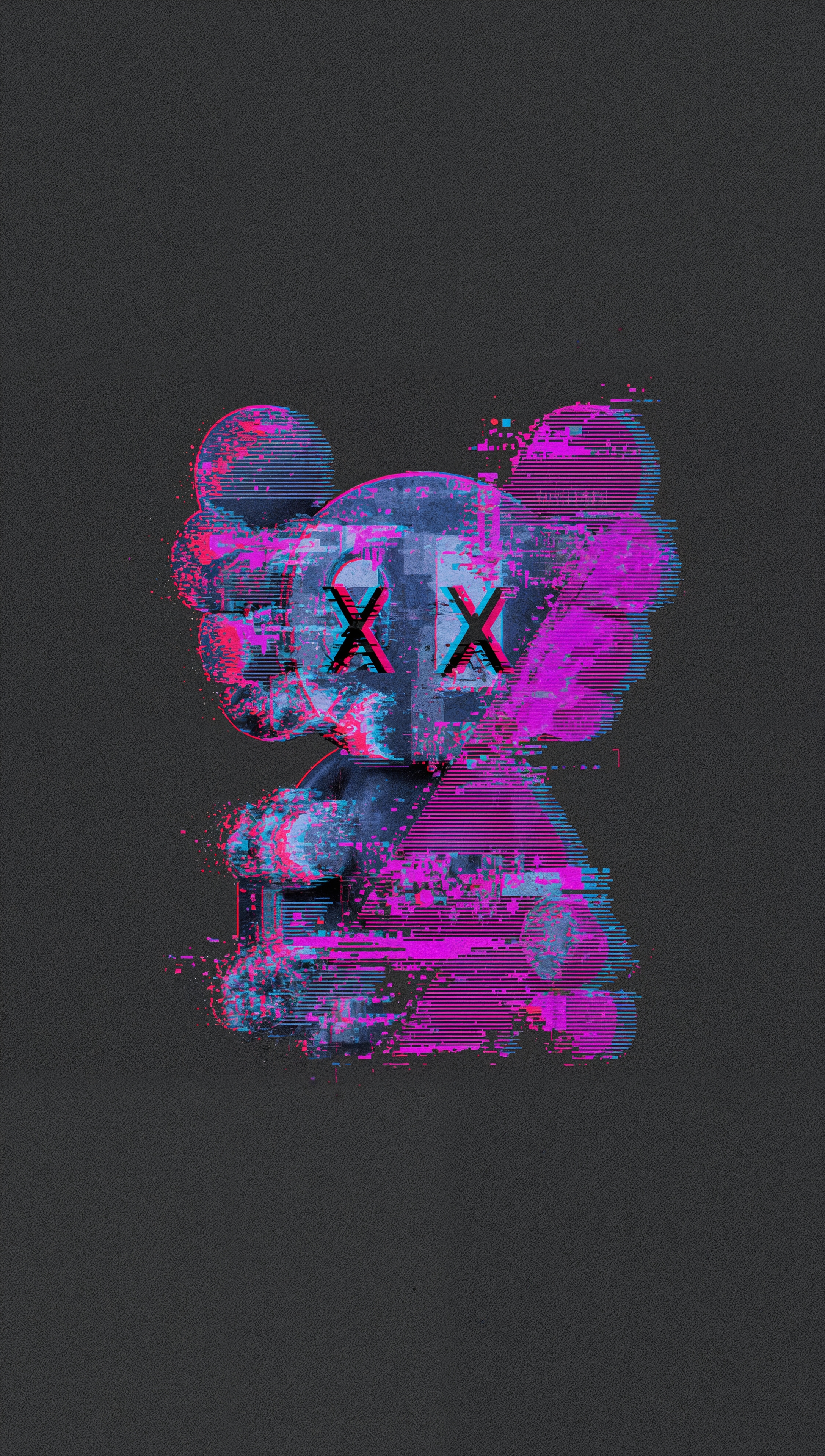 2176x3840 Kaws iPhone wallpaper – glitch digital effects