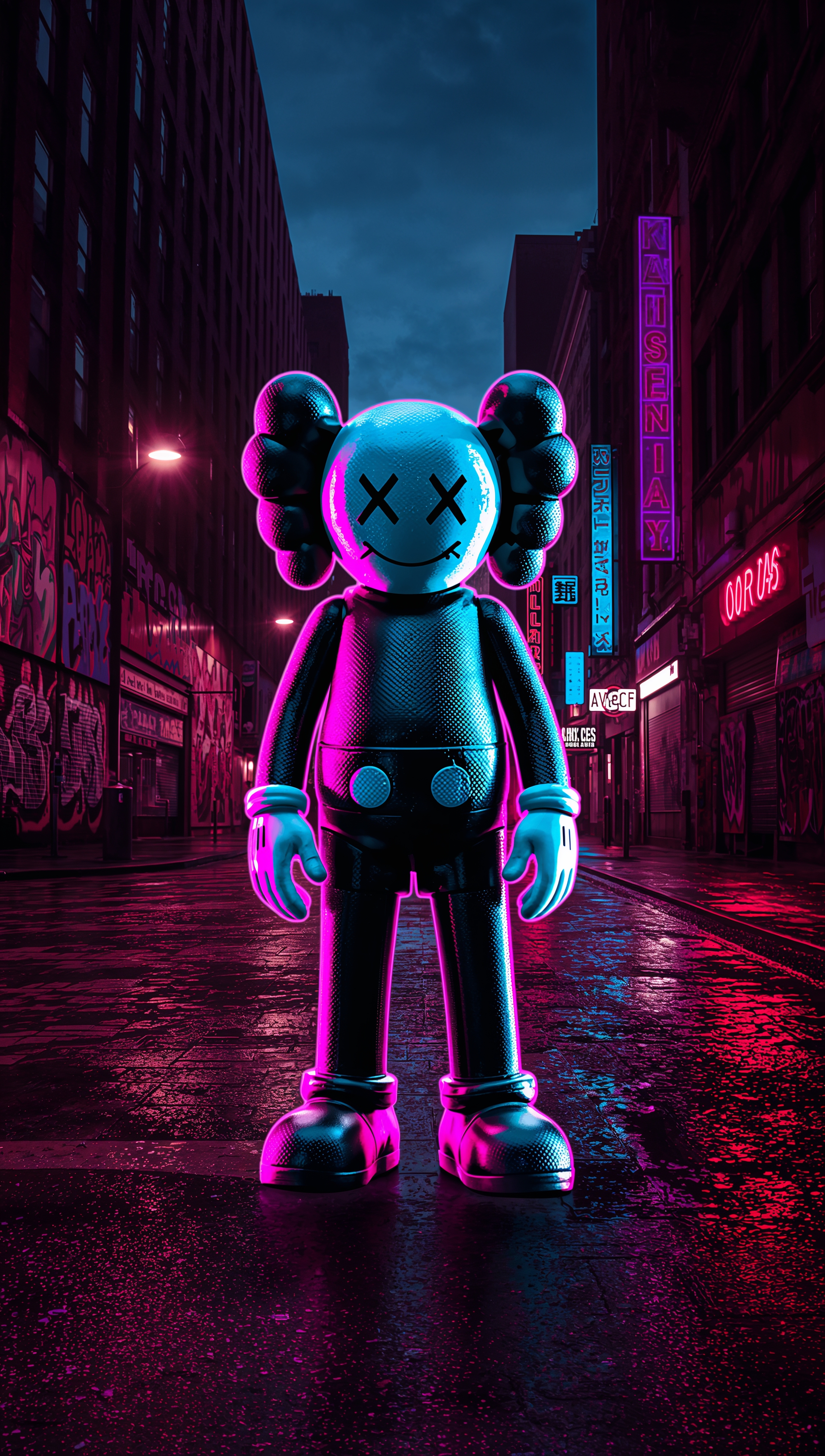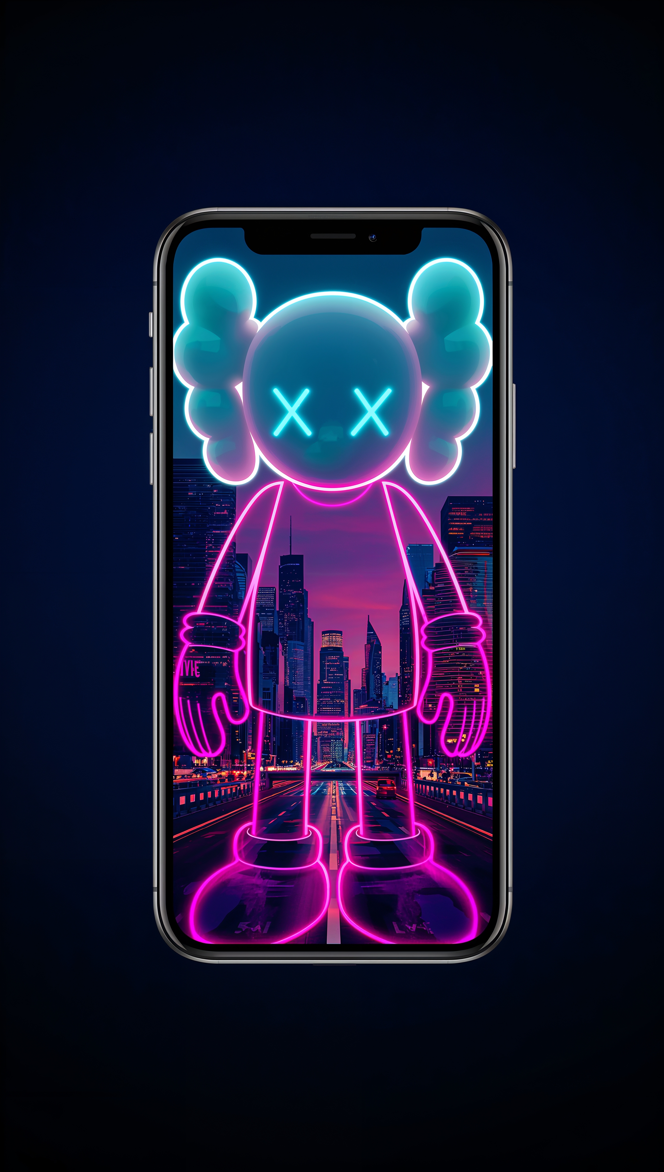 2176x3840 Kaws iPhone wallpaper – futuristic neon interaction