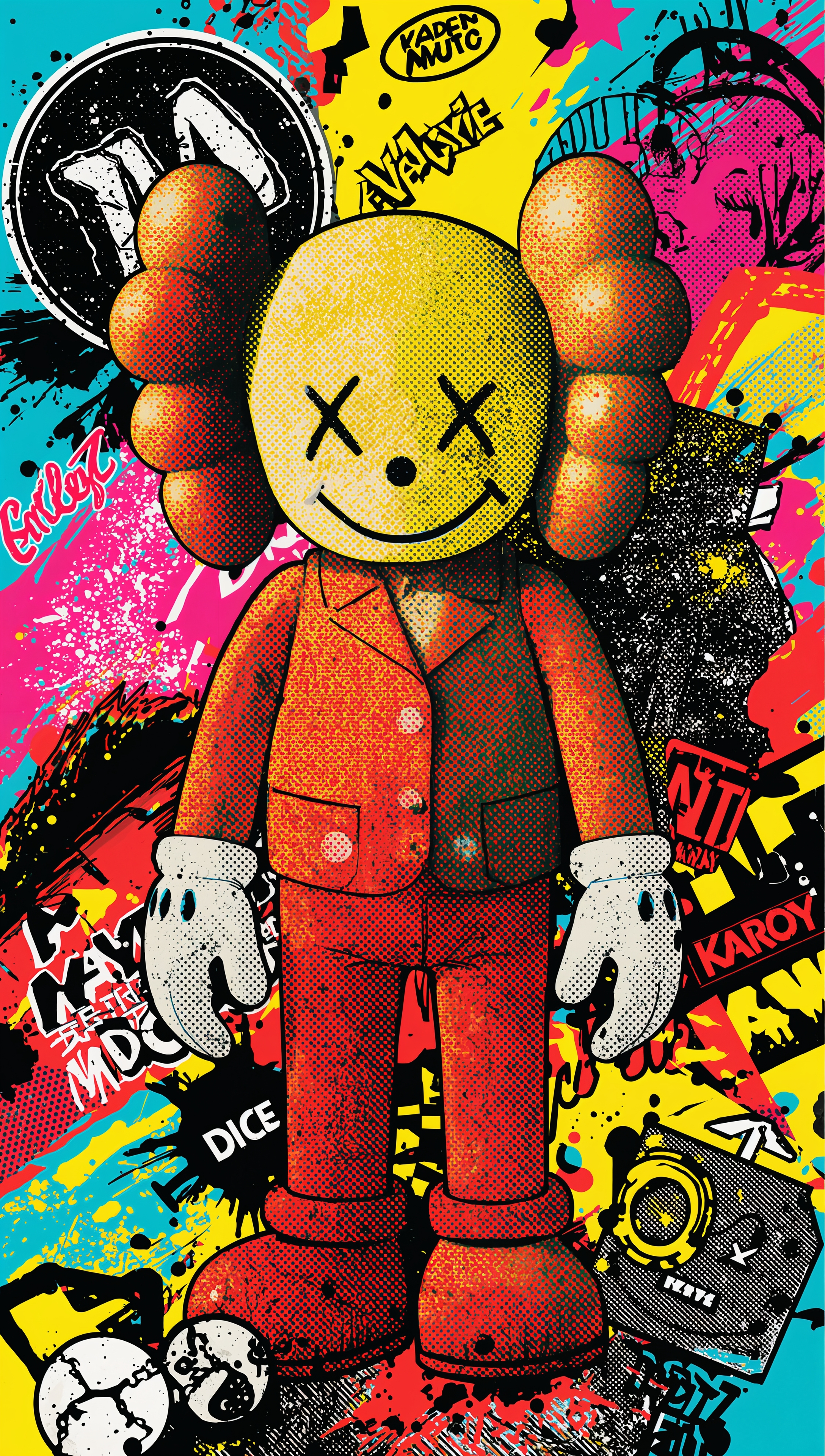 2176x3840 Kaws iPhone wallpaper – pop art collage
