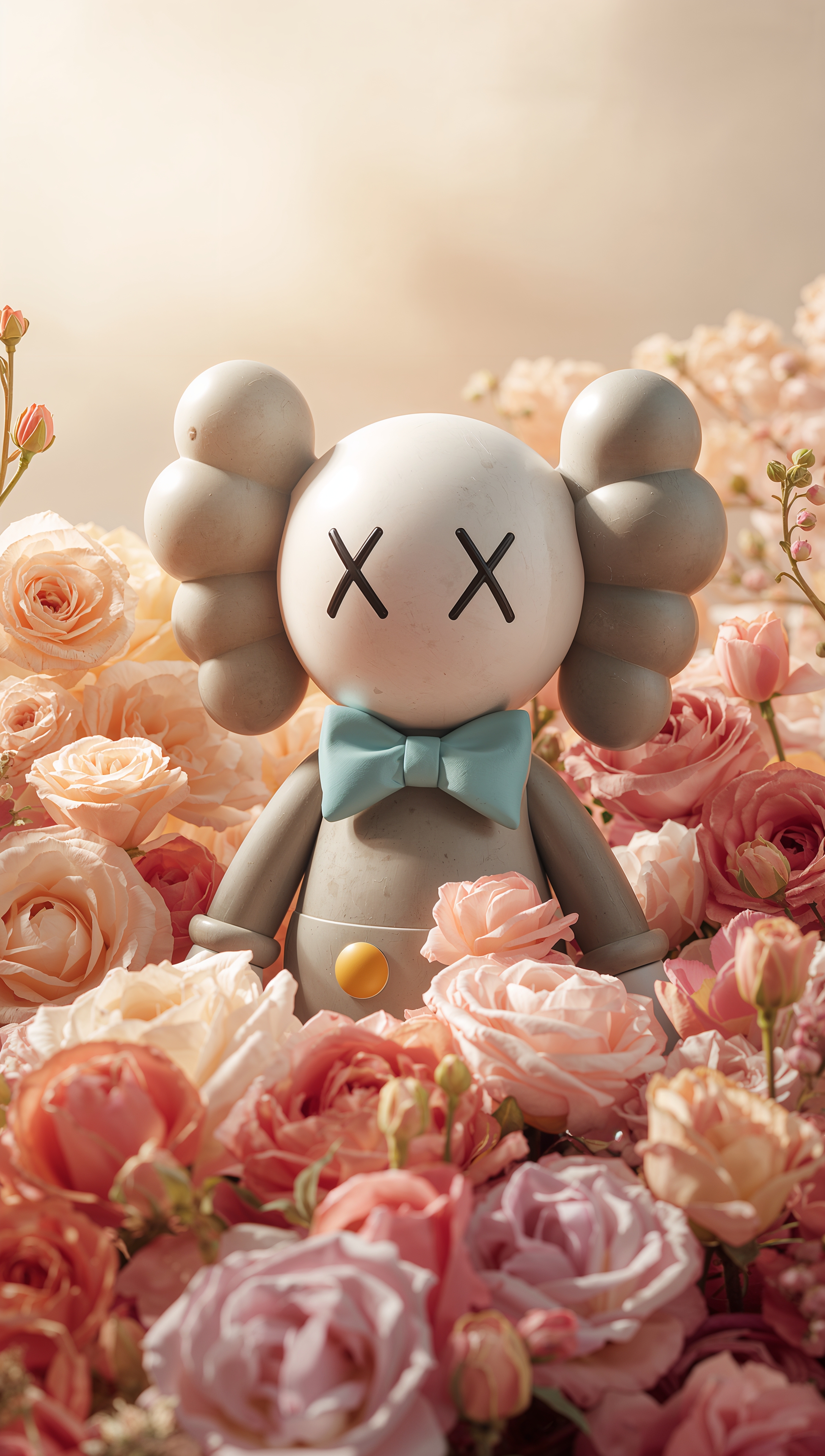 2176x3840 Kaws iPhone wallpaper – sculpture with floral background