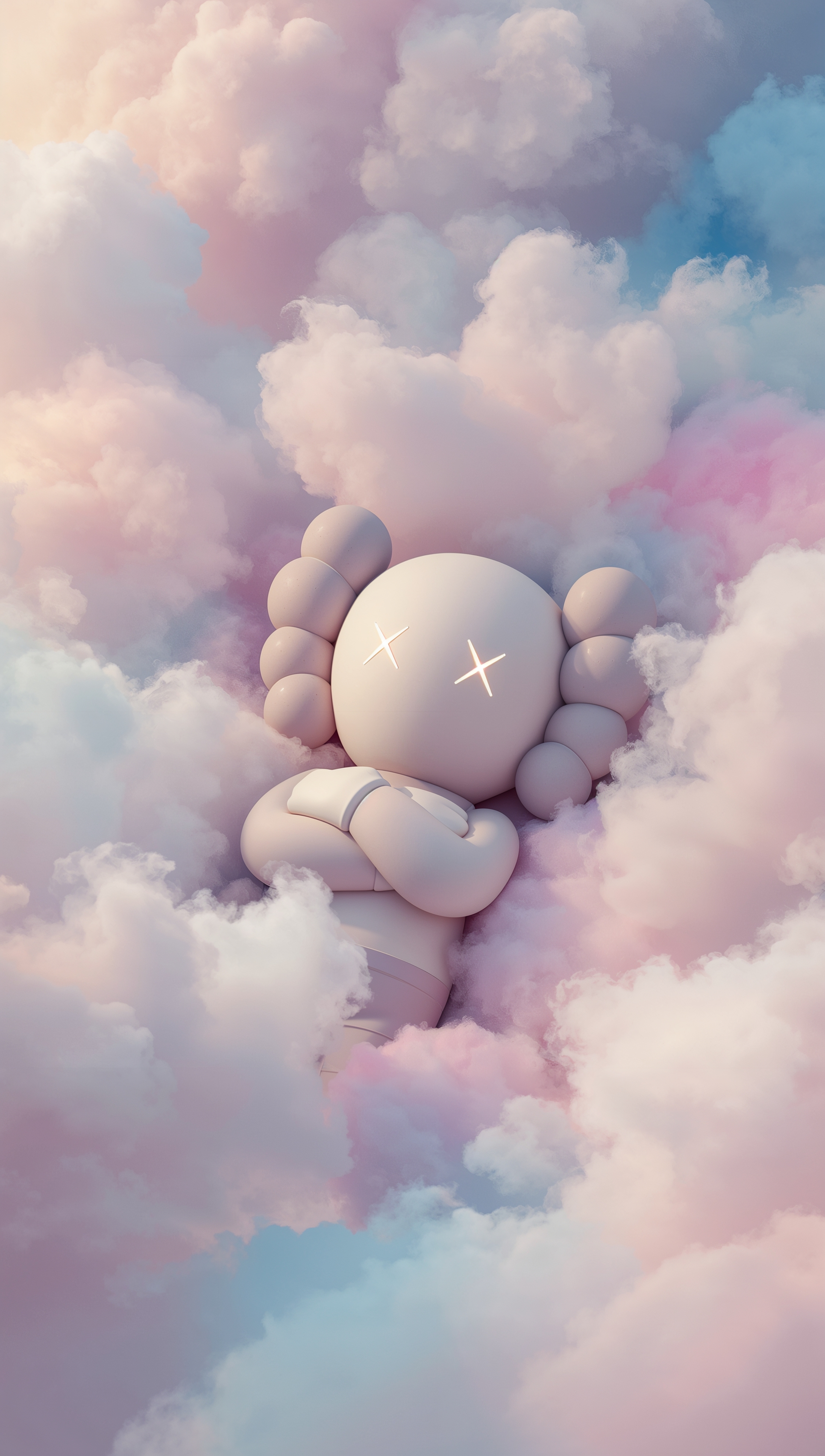 2176x3840 Kaws iPhone wallpaper – character in pastel clouds