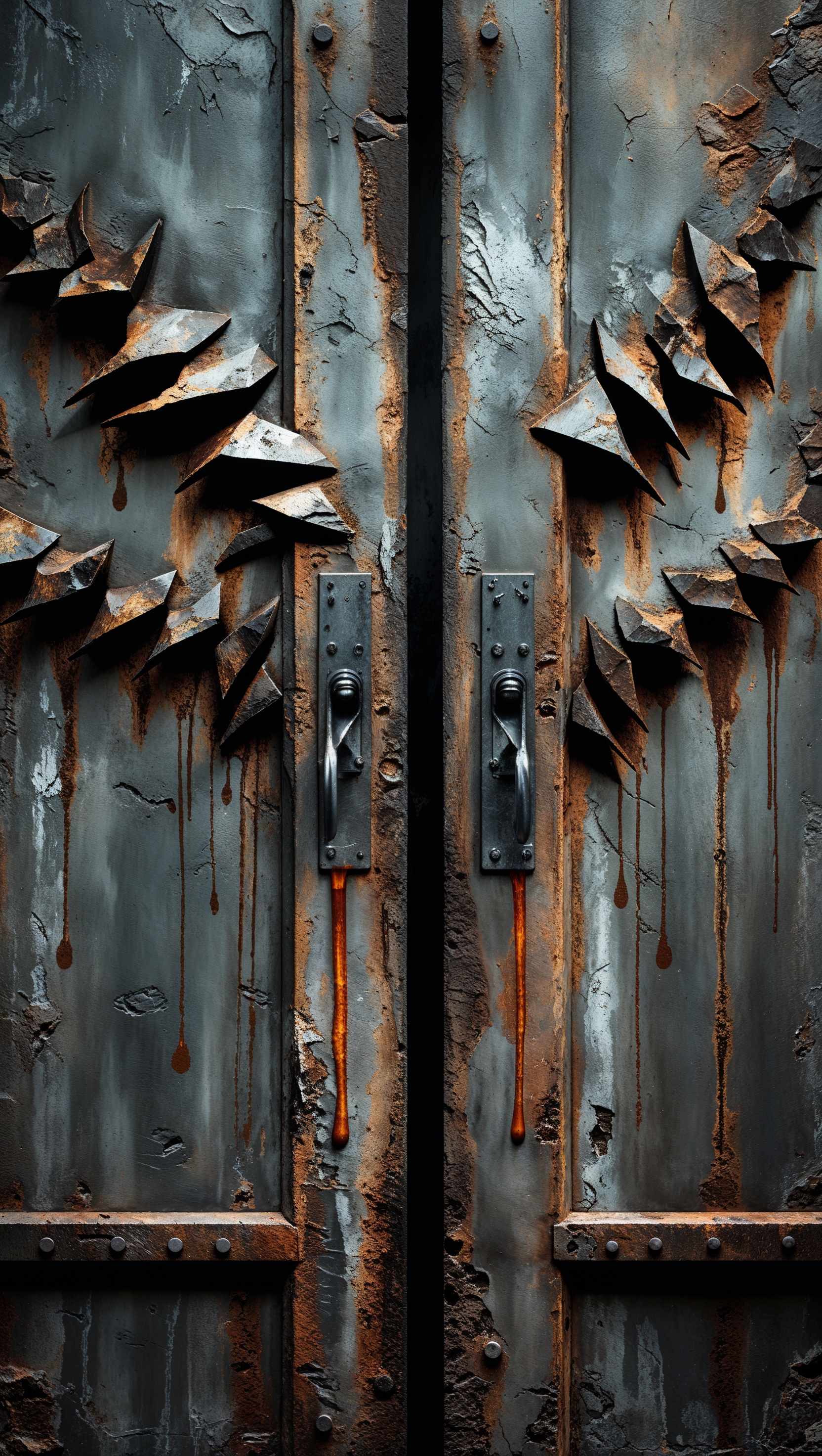 1664x2944 Corroded metal doors with deep claw marks scratched in