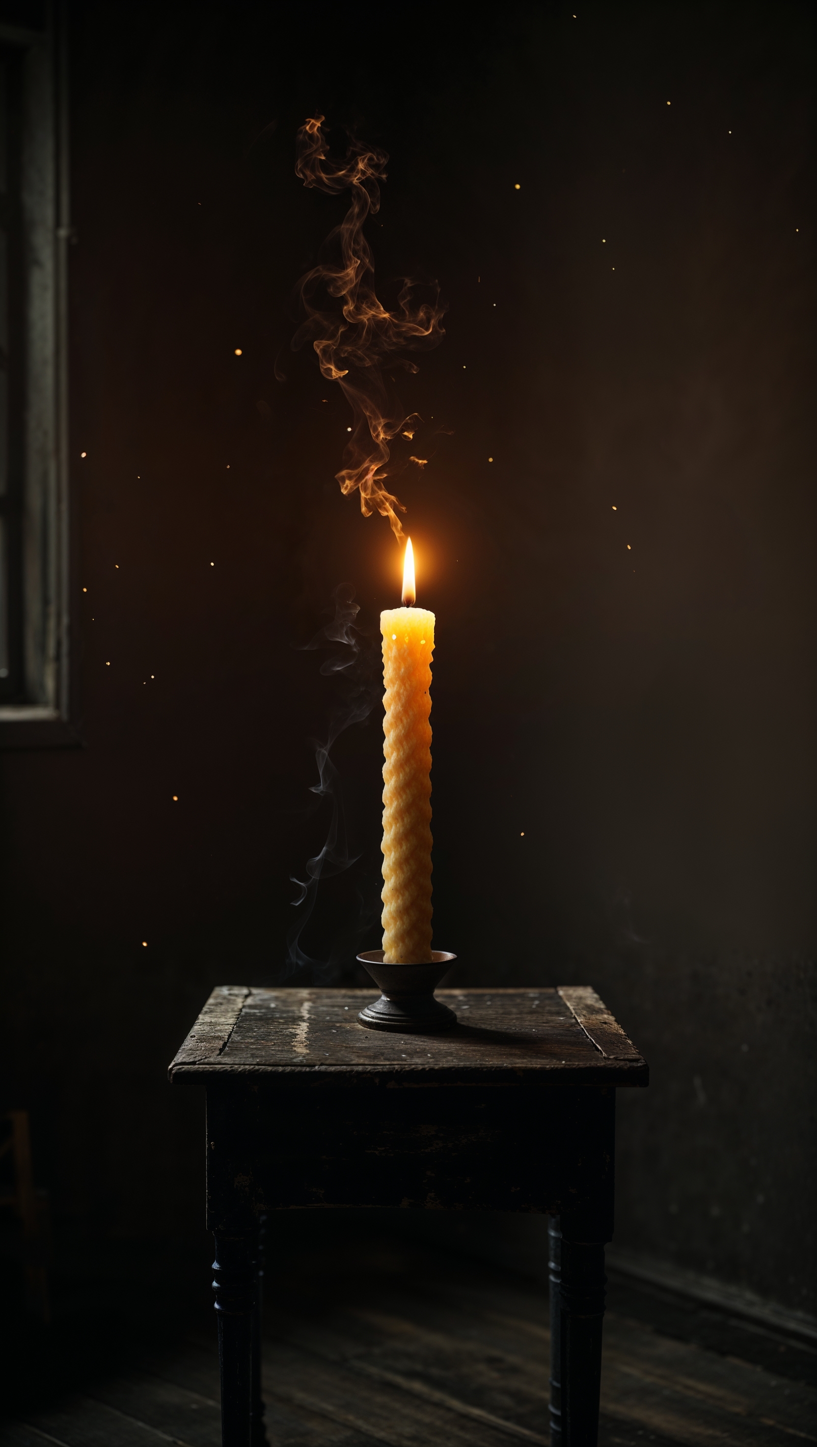 1664x2944 A single candle burning in an otherwise pitch-black room